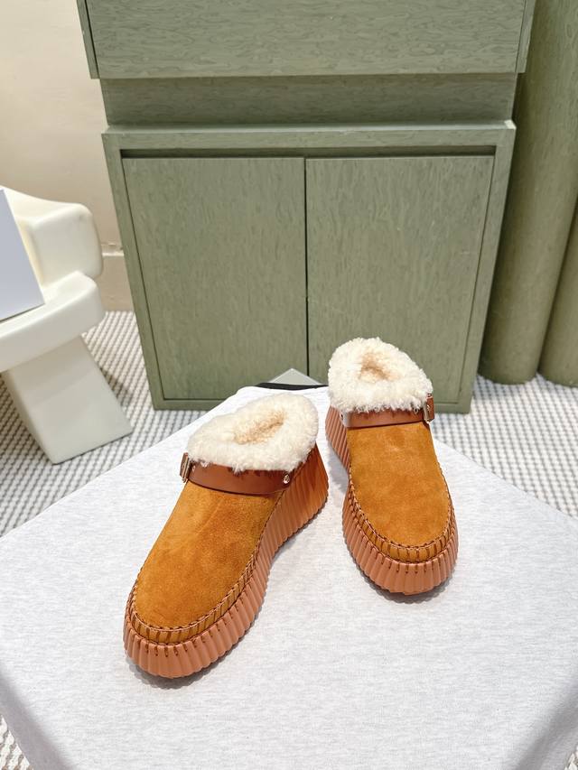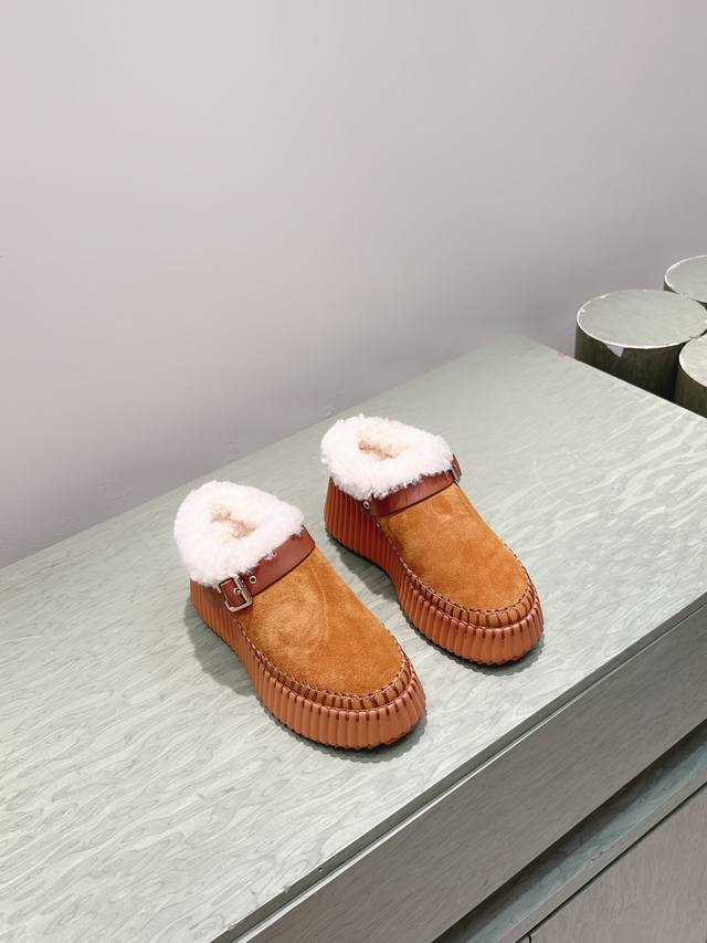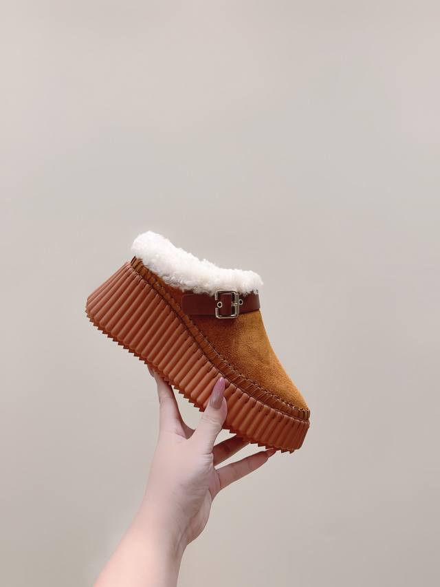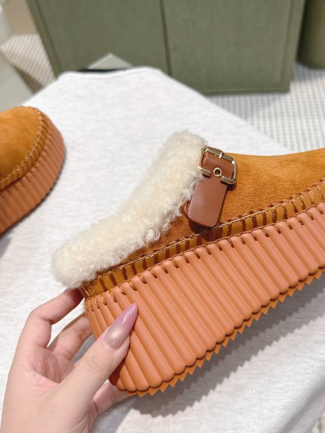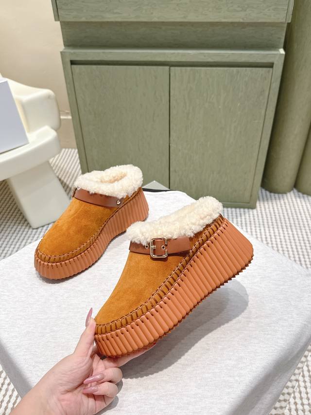 代购级 Chloe25S秋冬Nama爆款厚底毛毛鞋 牛皮+柔软毛绒,秋冬穿超有氛围感 Size :35-41 40.41订做