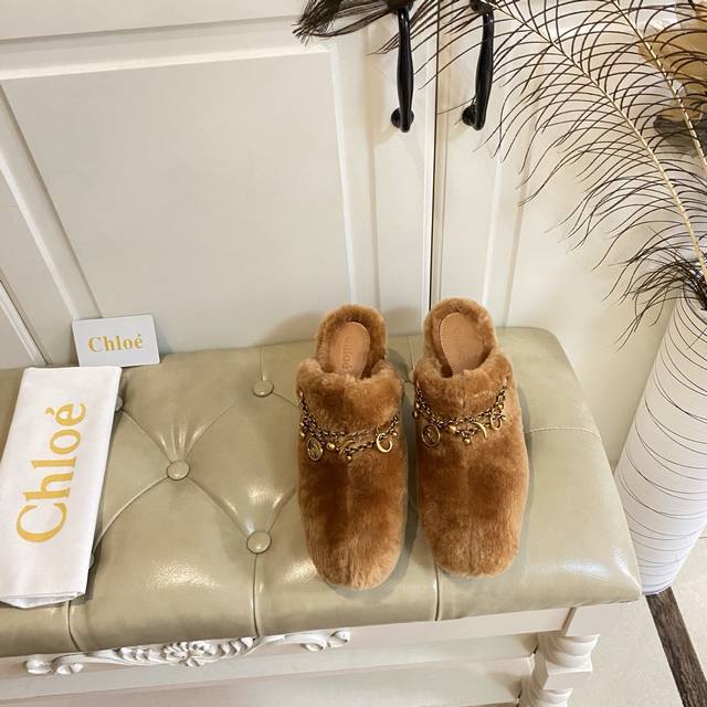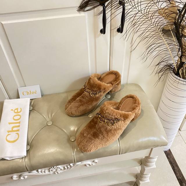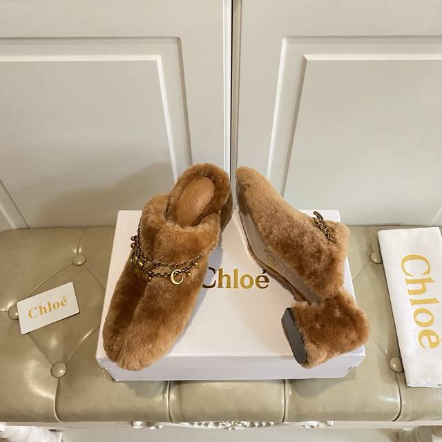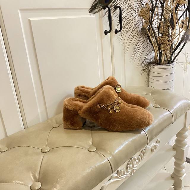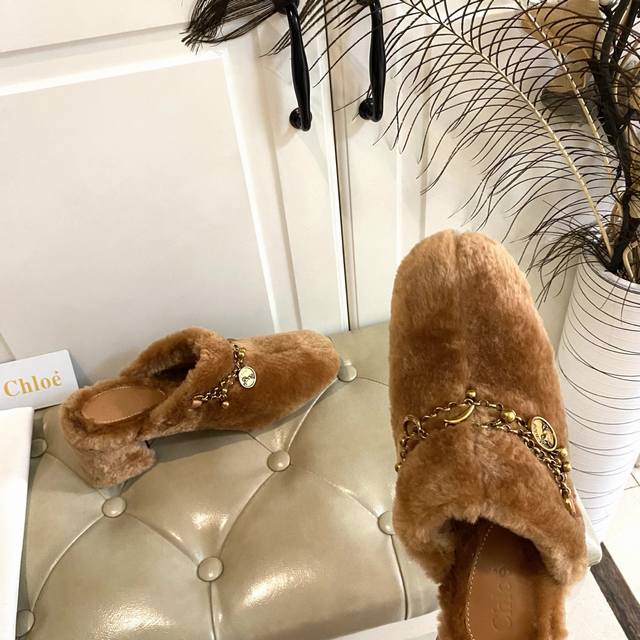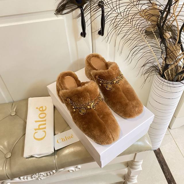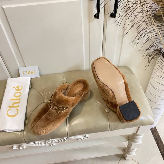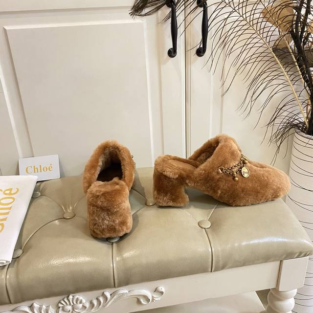 出厂价P ,克洛伊Chloe高跟毛拖,羊毛搭私模五金配件,真皮大底,35-39码