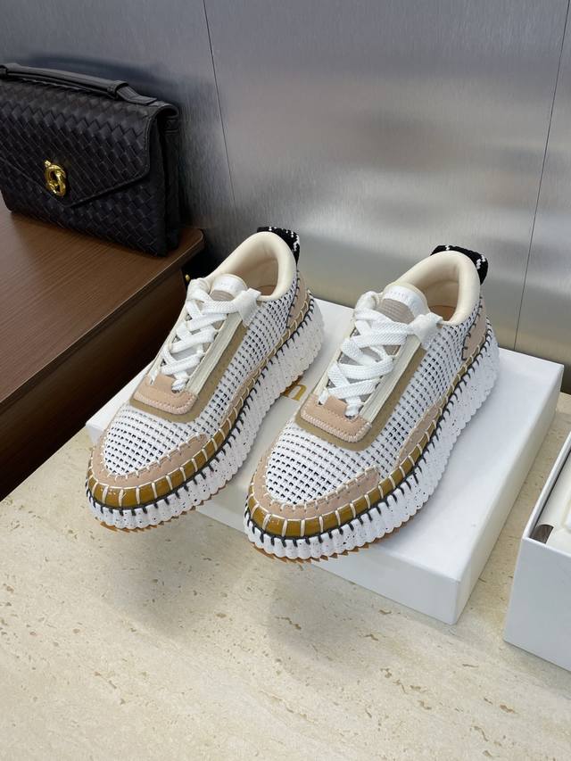 / 工厂P价P Chloe 蔻依 2025秋冬走秀新款运动跑鞋 明星同款厚底系带休闲时尚拼色老爹鞋 市面顶级高端版本 材质:鞋面进口小牛皮+环保透气网眼布内里+水染