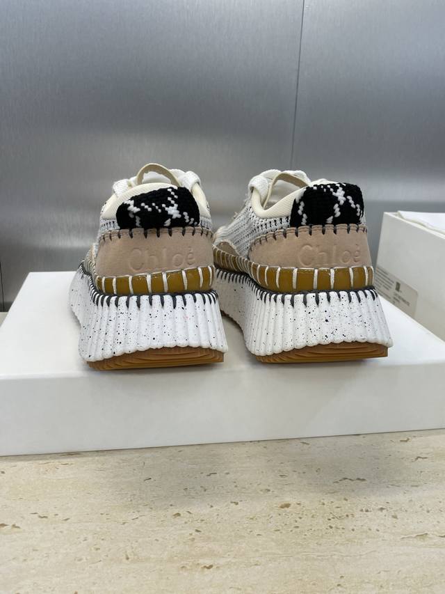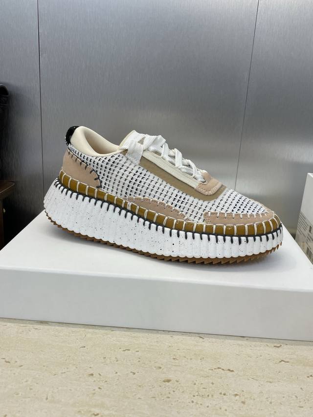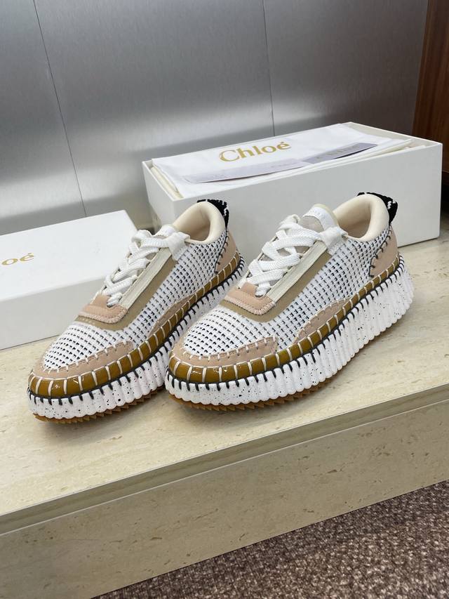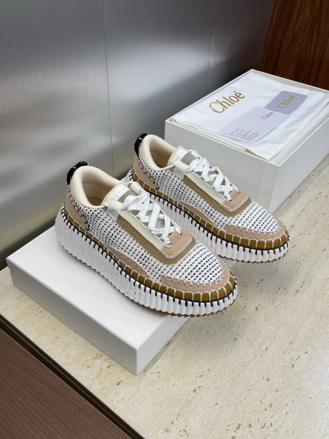 工厂P价P Chloe 蔻依 2025秋冬走秀新款运动跑鞋 明星同款厚底系带休闲时尚拼色老爹鞋 市面顶级高端版本 材质:鞋面进口小牛皮+环保透气网眼布内里+水染