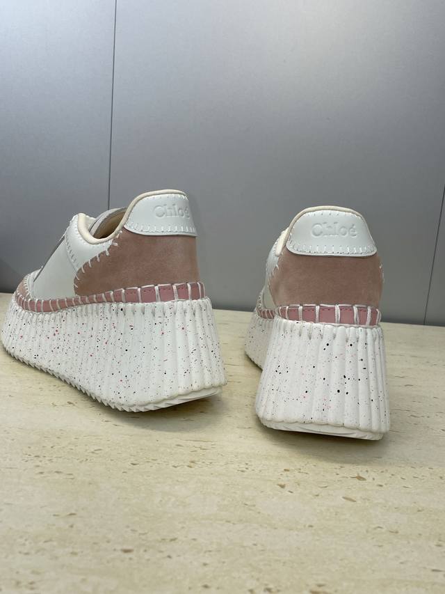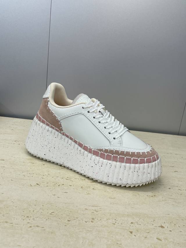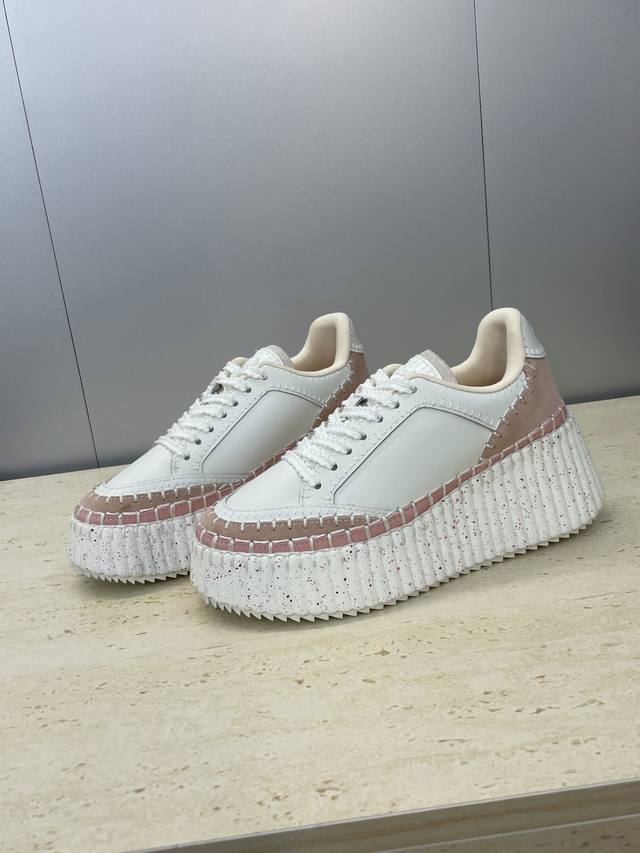 工厂p价p Chloe 蔻依 2025秋冬走秀新款运动跑鞋 明星同款厚底系带休闲时尚拼色老爹鞋 市面顶级高端版本 材质:鞋面进口小牛皮+环保透气网眼布内里+水染