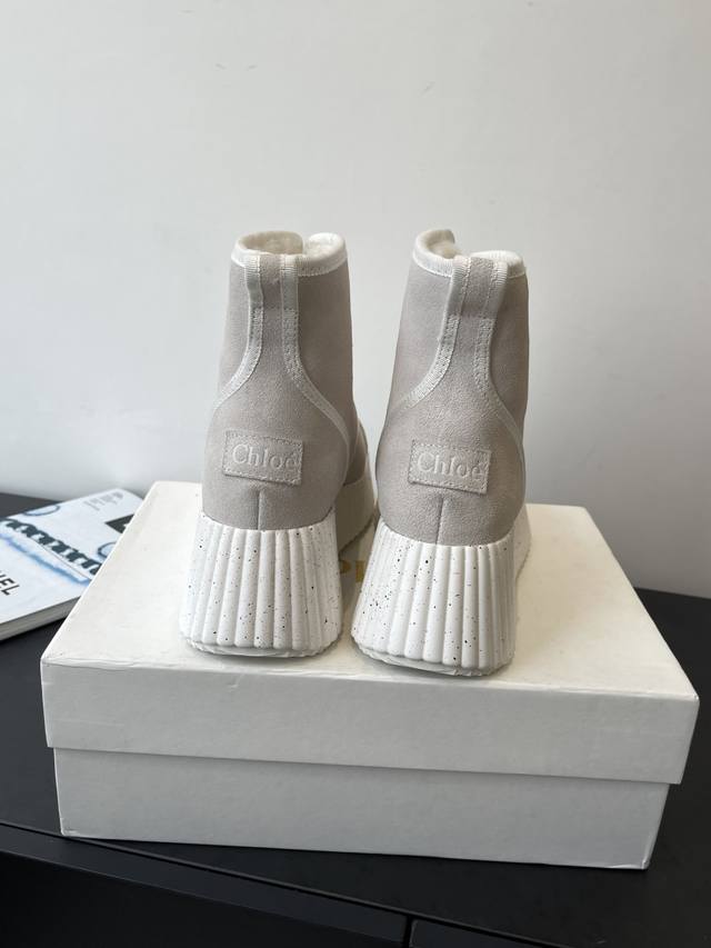 Chloe蔻依 专柜同步上市新款雪地靴, 这款面料使用进口牛反绒 内里 真羊毛 质感清爽透气不焖脚 时尚简约范儿 女神都爱 美翻啦 5Cm超轻橡胶发泡抽真空大底