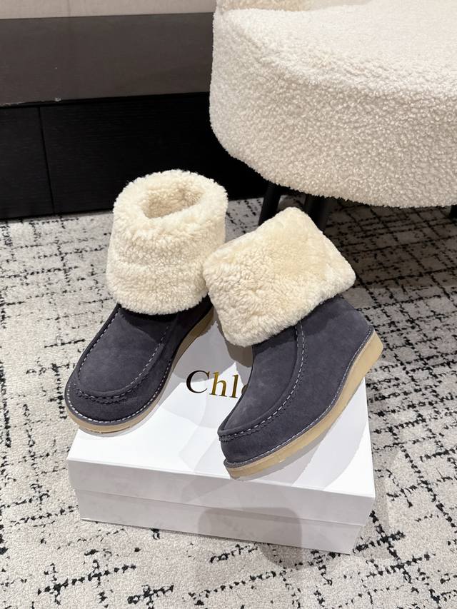 Chloe 蔻依 25 秋冬 新款雪地靴 这款面料使用进口牛反绒,真羊毛内里,质感清爽透气不焖脚 时尚简约范儿 女神都爱 美翻啦 ,生胶大底,舒适得不要不要的