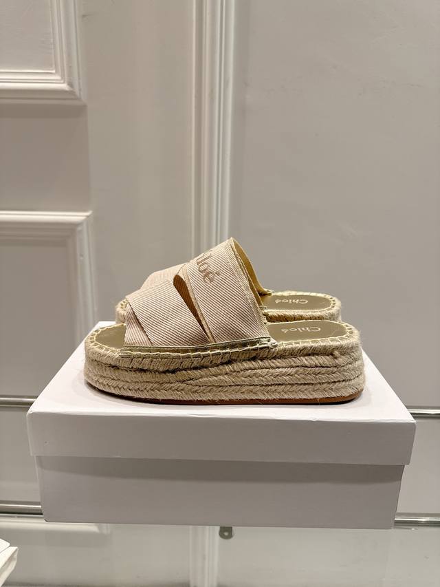 Chloe 2025 克洛伊新款弹力拖鞋 入手一款本季颜值爆表的增高麻底拖, 全网独家开模定制,专柜验货级别 鞋面原版一比一定制丝绸,内里水晶羊皮垫脚,原版开模