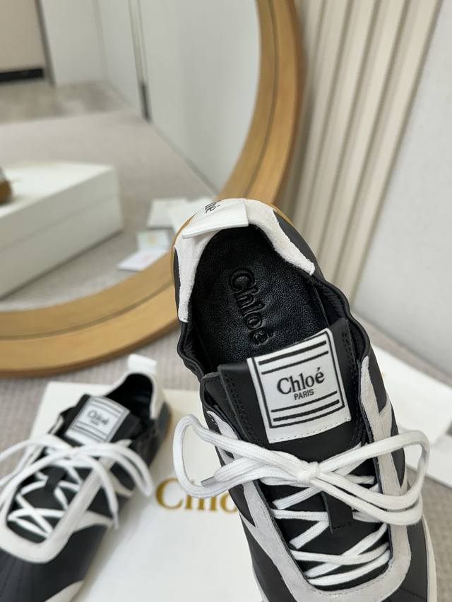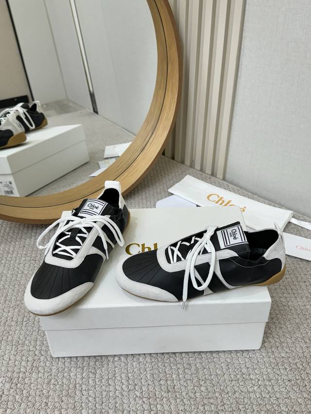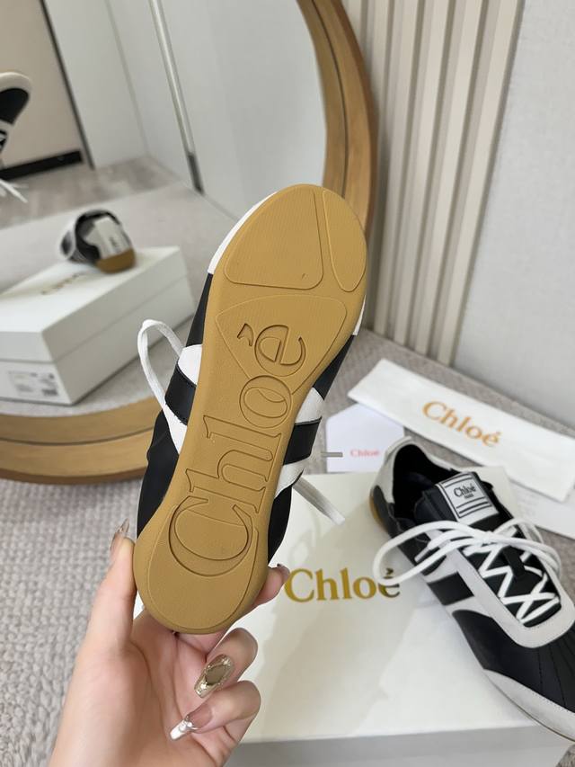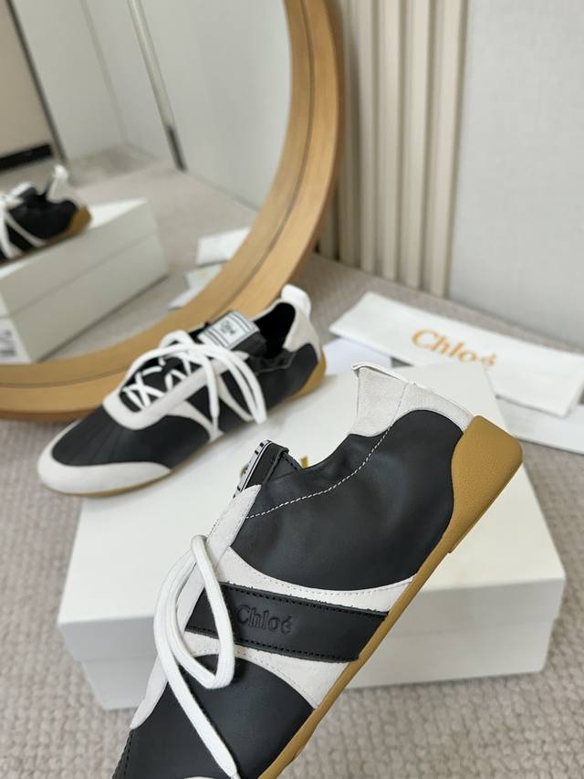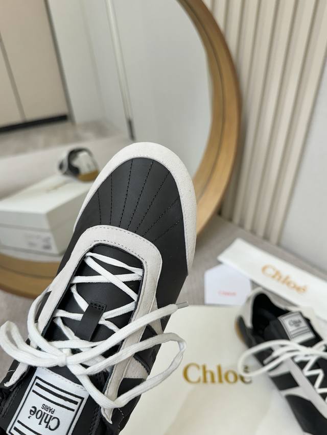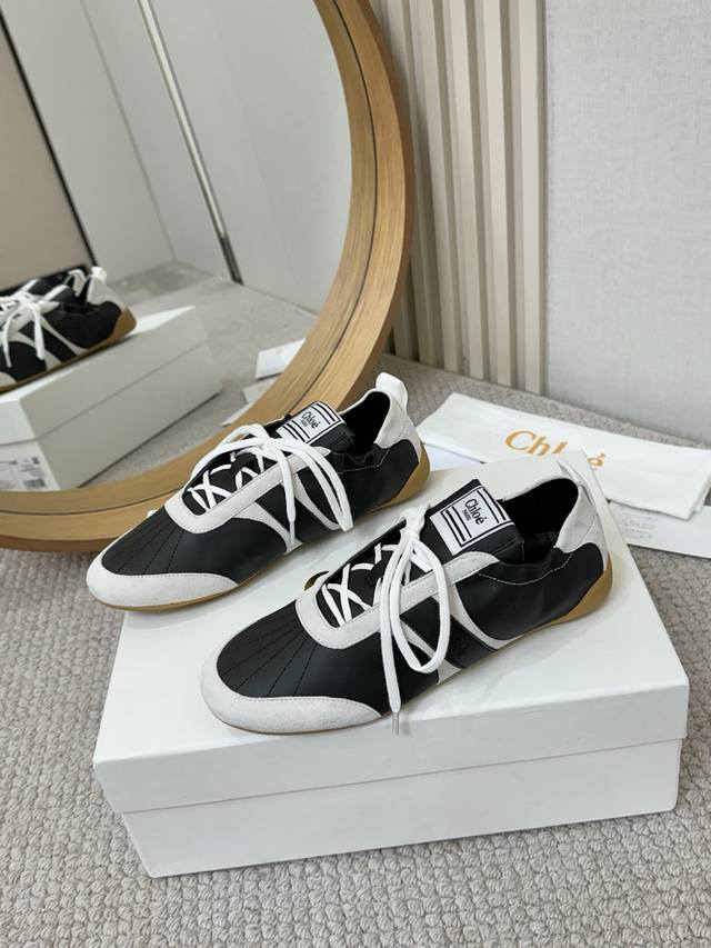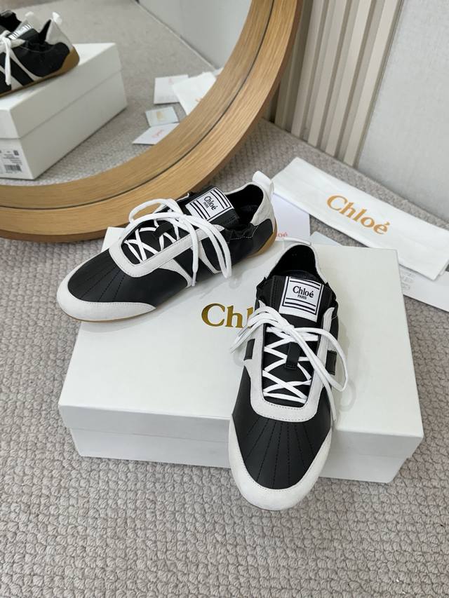 工厂p批 女装女鞋 运动原单 Chloe蔻依 新款阿甘鞋德训鞋 新款运动鞋轮廓采用牛皮拼接制成,灵感来源于复古跑鞋。通过缝线、拼接等工艺,赋予单品新的生命和美感