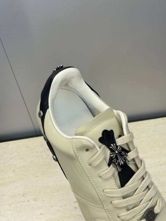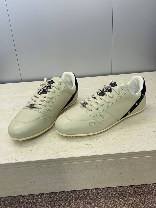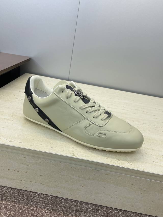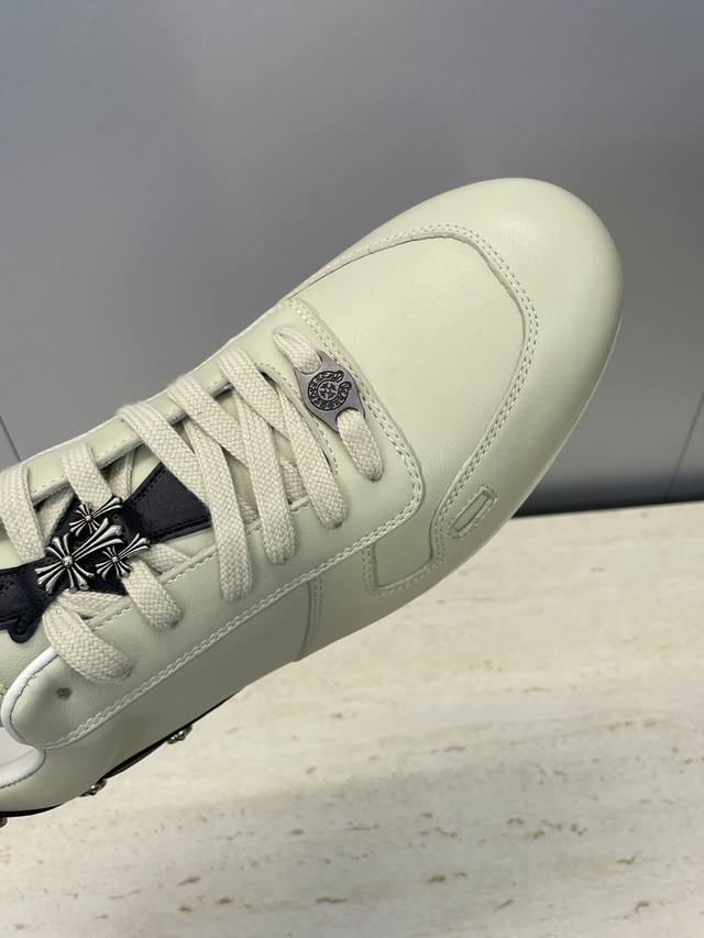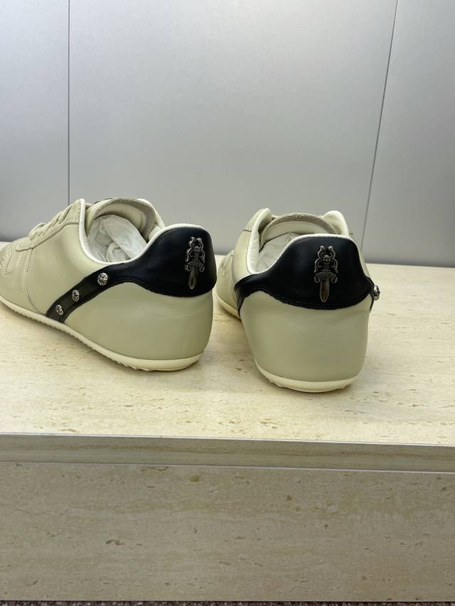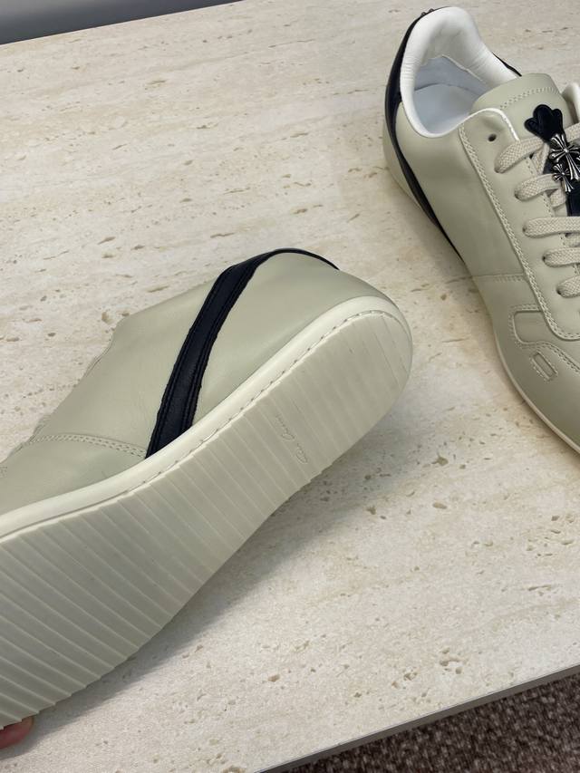 / 工厂p价p Rick Owens X克罗心 2025秋冬情侣新款系带休闲运动德训鞋 欧文斯字母Logo五金扣拼色圆头滑板小白鞋 材质:鞋面采用进口小牛皮 进口羊