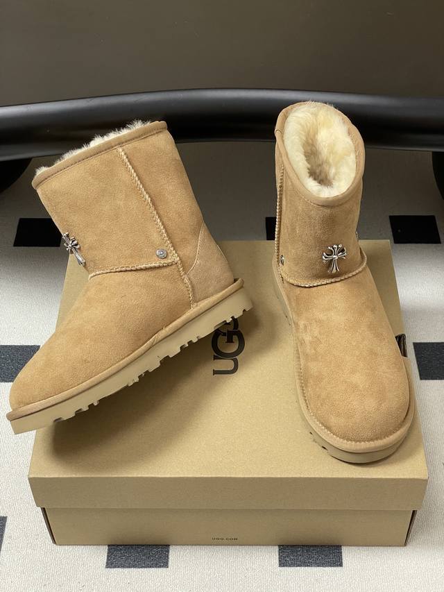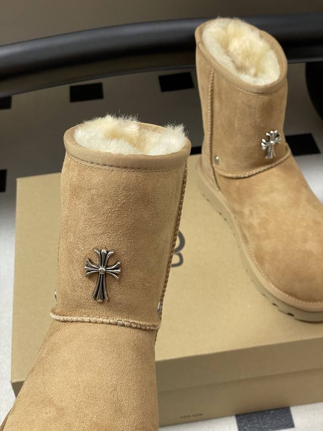 Ugg X Chromehearts 克罗心联名~限量版雪地靴 限量款系列,一款不会撞衫的雪地靴、简约的联名撞色设计轻便的大底、鞋面采用定制防水牛猄、内里定制纯