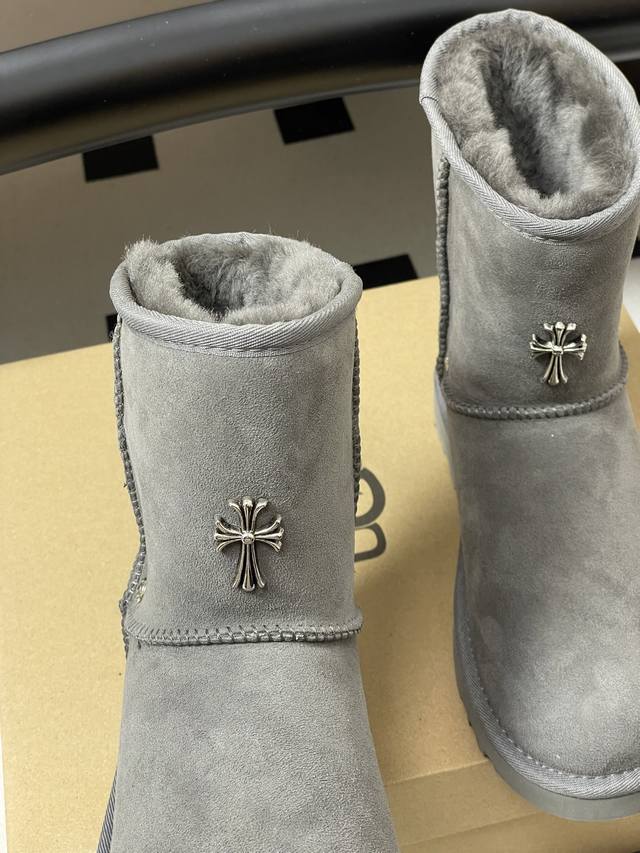 Ugg X Chromehearts 克罗心联名~限量版雪地靴 限量款系列,一款不会撞衫的雪地靴、简约的联名撞色设计轻便的大底、鞋面采用定制防水牛猄、内里定制纯