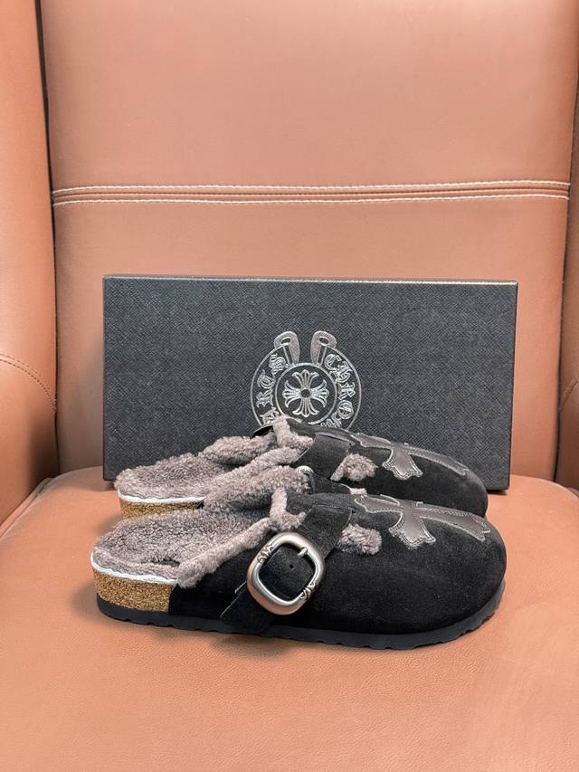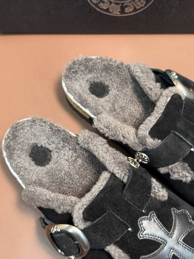 Chromehearts Birkenstock联名勃肯鞋毛拖。进口牛皮搭配克罗心的五金。质感拉满还不撞鞋真是绝绝子啦!穿着真是又舒服又方便,通勤上班出游必备。 p: ,Size:38-46 DDD