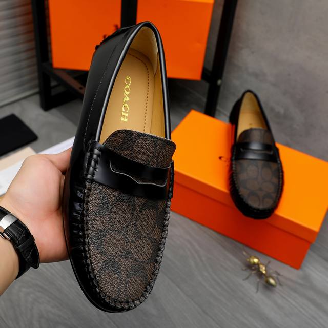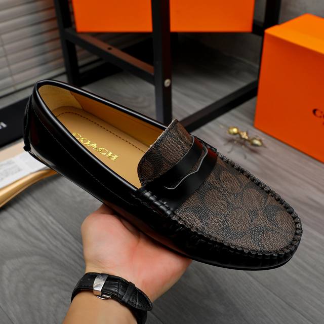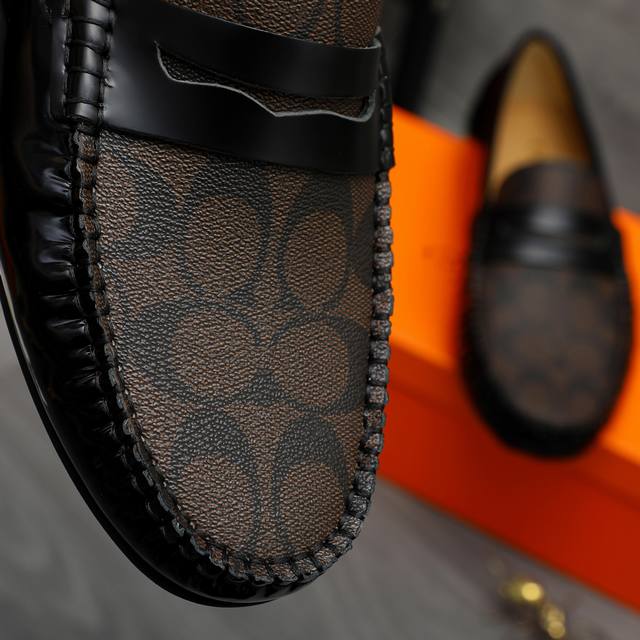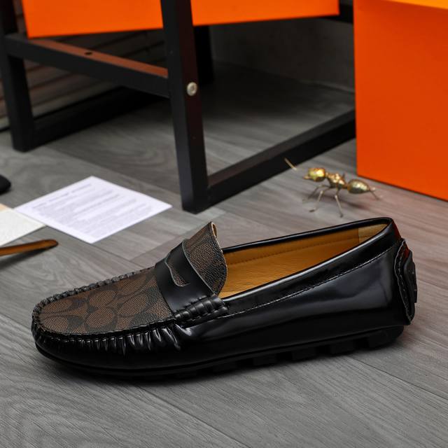 商品商标:Coach 蔻驰 休闲套脚男鞋 正码码数: 38-44 商品材料:精选漆光牛皮拼接经典印花鞋面 羊皮内里 橡胶大底