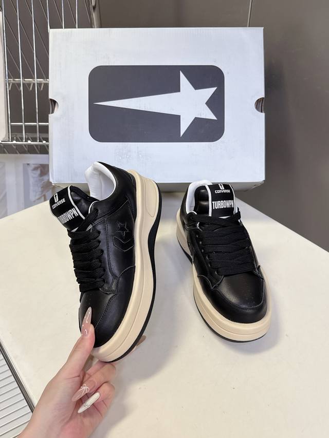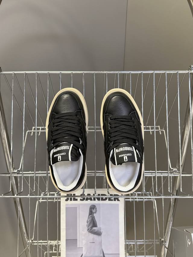Rick Owens 欧文斯 X Converse匡威联名款运动鞋 超多明星时尚博主种草 两个品牌元素相结合 碰撞出新的火花 每一处细节无不彰显品牌Dna基因 通过立体充气鞋面重塑经威篮球鞋轮廓 标志性加长鞋舌膨胀中底的夸张比例Bweapon的传奇风范与Ro的暗黑质感交织共生 厚底设计妥妥的增高神器 鞋面采用荔枝纹牛皮 原版开模大底 码数:女35-40 男39-44