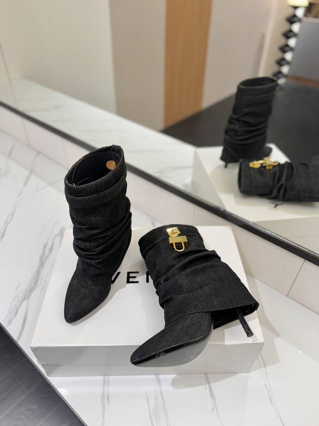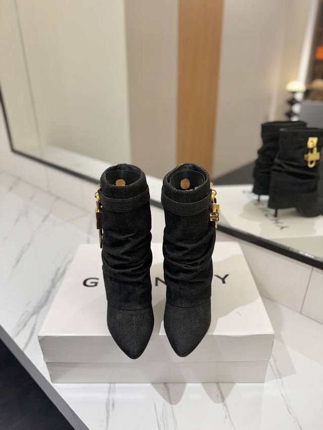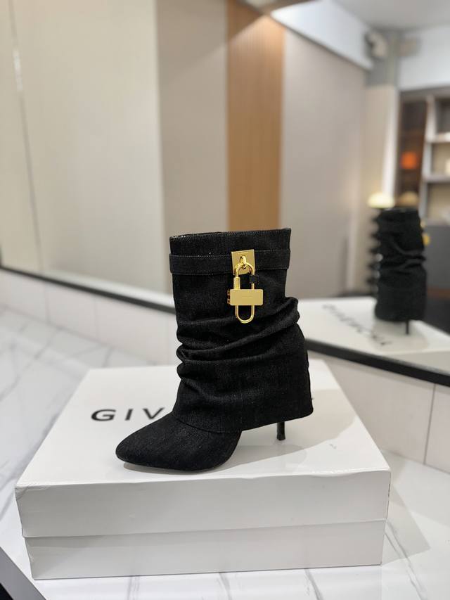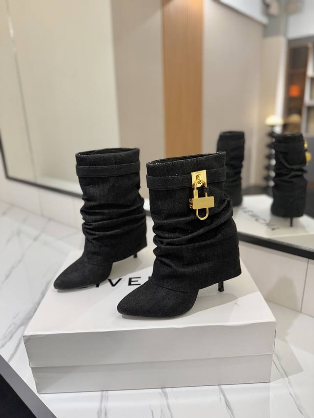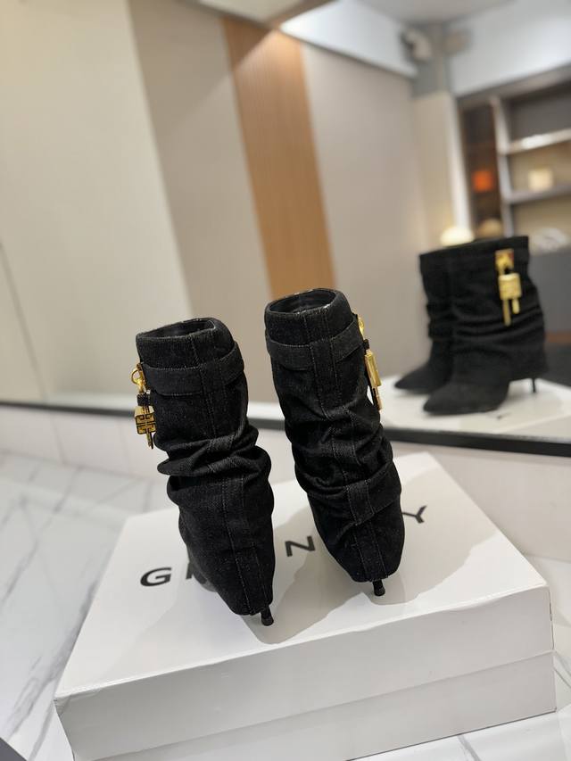 专柜正品级定制版本 DDD Givenchy纪梵希 Shark Lock 系列 挂锁 短靴打皱新款,市面最高版本 DDD 纪梵希 锁扣 风靡整个时尚圈秒变大长腿 DDD 原版开发鞋型超级正 最高还原度鞋型 DDD 包裹性非常好 显瘦 显高级 超级舒适 DDD 鞋面:水洗牛仔 DDD 内里:小牛皮 DDD 定制对版私模标志性Logo锁扣 DDD 锁扣搭配有纯银色,纯金色,金银混搭,下单备注即可 DDD 鞋跟:对版私模 跟高10.5Cm DDD 大底 :进口真皮大底 DDD 码数:35-40 34.40 41