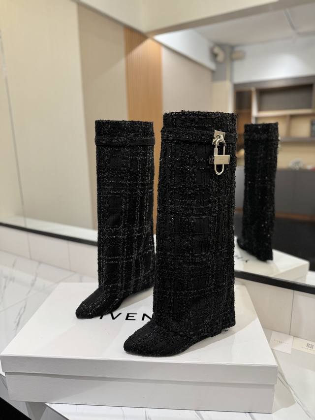 Givenchy0 新款缇花格子布中长靴,市面最高版本
