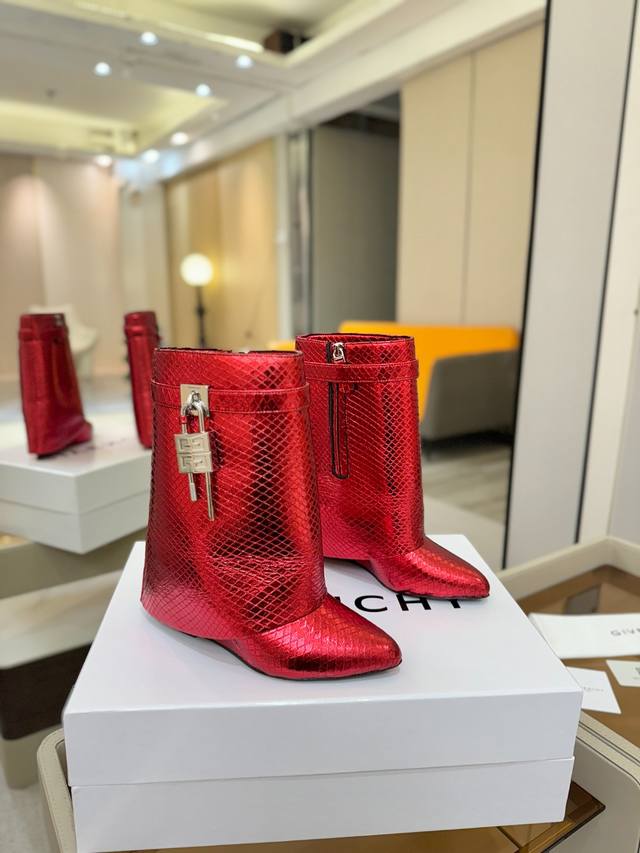 价格p: 专柜正品级定制版本 Givenchy纪梵希 Shark Lock 系列 挂锁 短靴 新款,市面最高版本 纪梵希 锁扣 风靡整个时尚圈 原版开发鞋型超级
