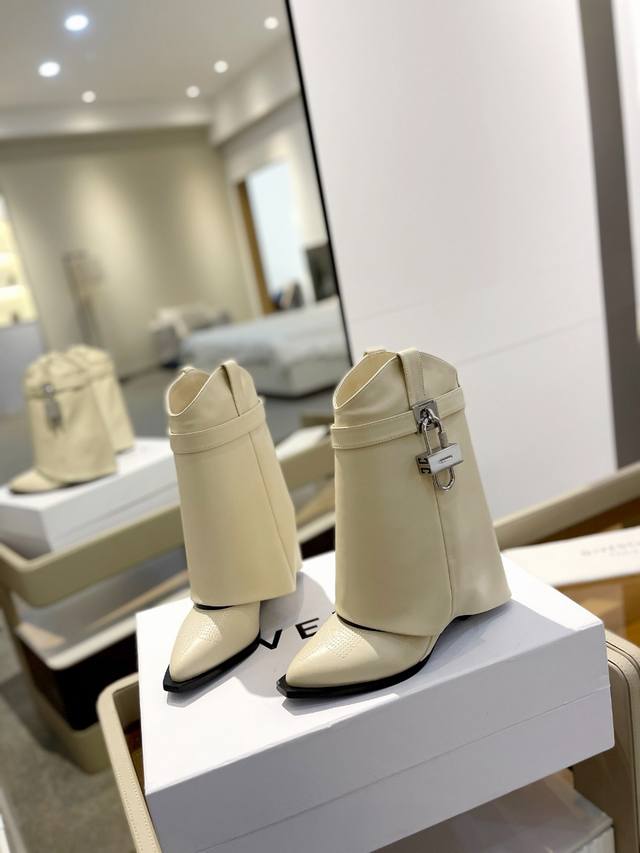 价格p: 专柜正品级定制版本 Givenchy0 新款高跟刺绣短靴,市面最高版本 纪梵希 锁扣 鞋头刺绣花款 风靡整个时尚圈 原版开发鞋型超级正 最高还原度鞋型