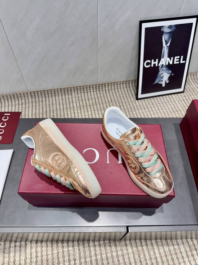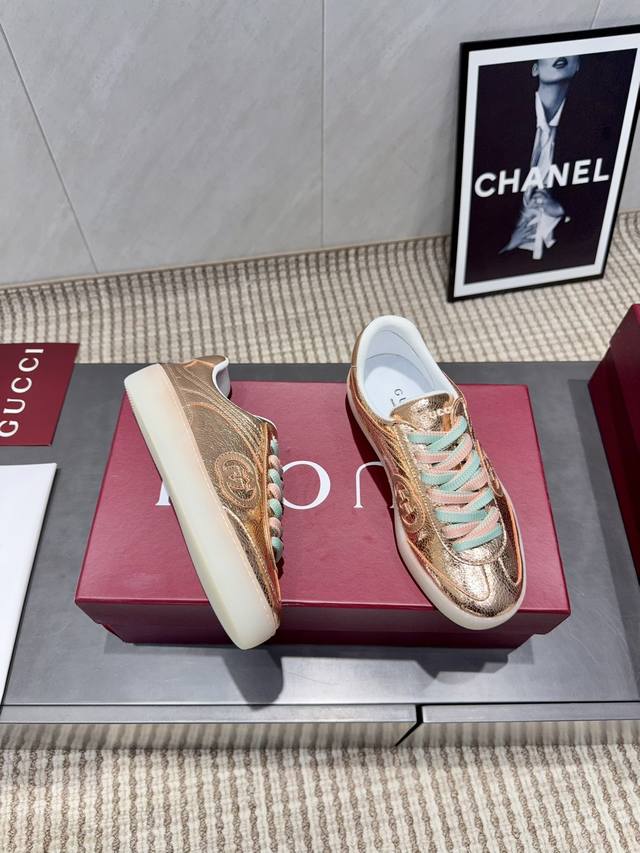 出厂:女款 男款可定制 独家顶级版本 拼色厚底休闲鞋 G家古驰小脏鞋全系列升级 长期做货 Gg古奇系列做旧休闲小脏鞋走秀款 Zp开发纯原版本 金属双G水晶圆柱形