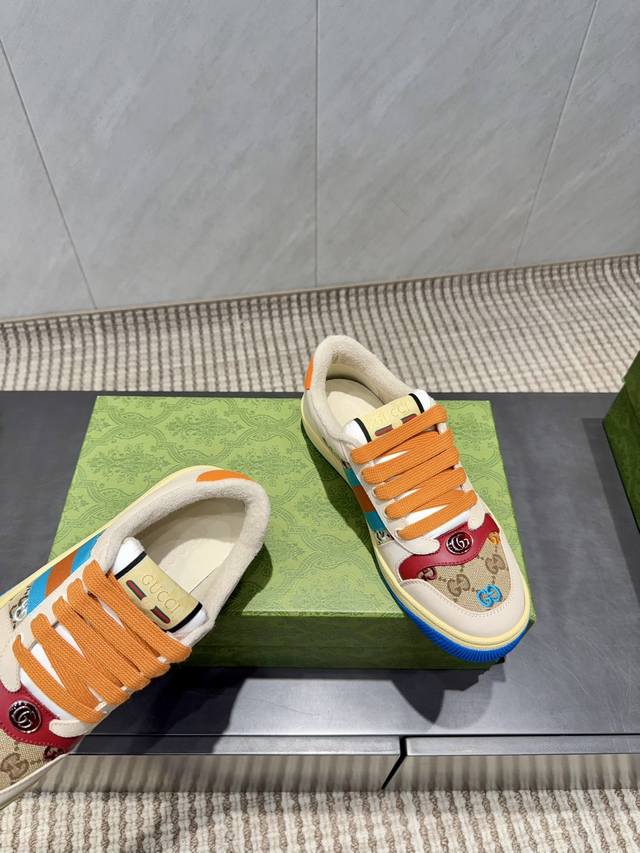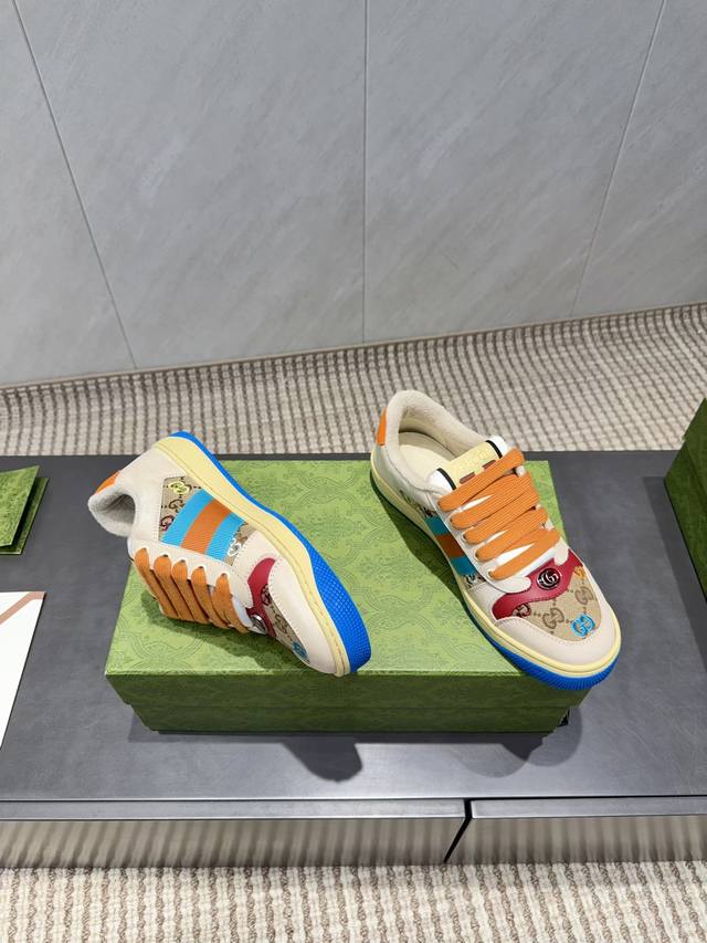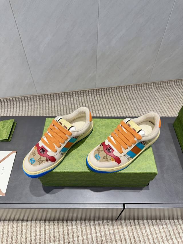 出厂:情侣刺绣 独家顶级版本 DDD 情侣拼色小脏鞋 DDD G家古驰小脏鞋全系列升级 长期做货 Gg古奇系列做旧休闲小脏鞋走秀款 Zp开发纯原版本 金属双G水晶圆柱形标 Gucc原版纹织带 鞋面擦色牛皮磨砂拼接经典双G布 DDD 面料:定制牛皮定制字母布料刺绣工艺 DDD 内里:定制原版毛巾布里,细腻柔软更舒适透气 DDD 垫脚:牛皮乳胶注塑一体,私模钢印 DDD 大底:原版开模双色Tpu大底 下层宽,上层窄 DDD 包装:原版飞机盒包装 DDD 码数:35-44 女41.男38.45.定制不退换 DD