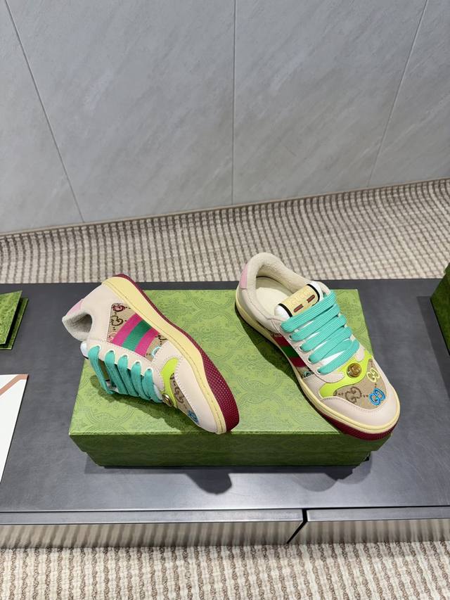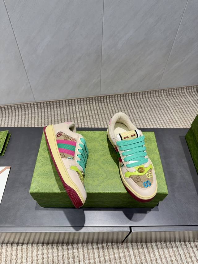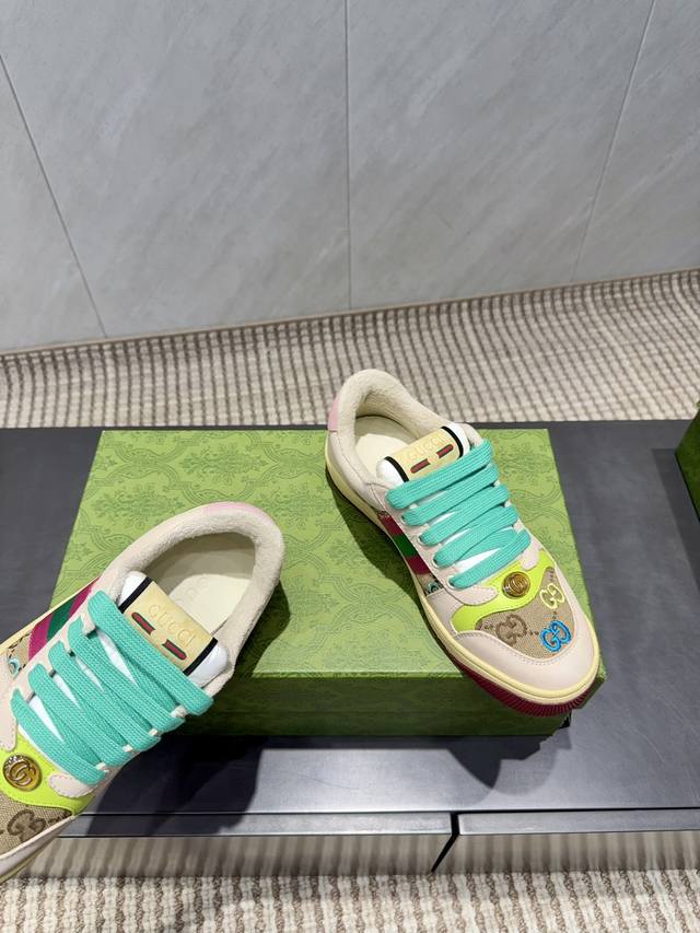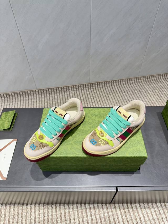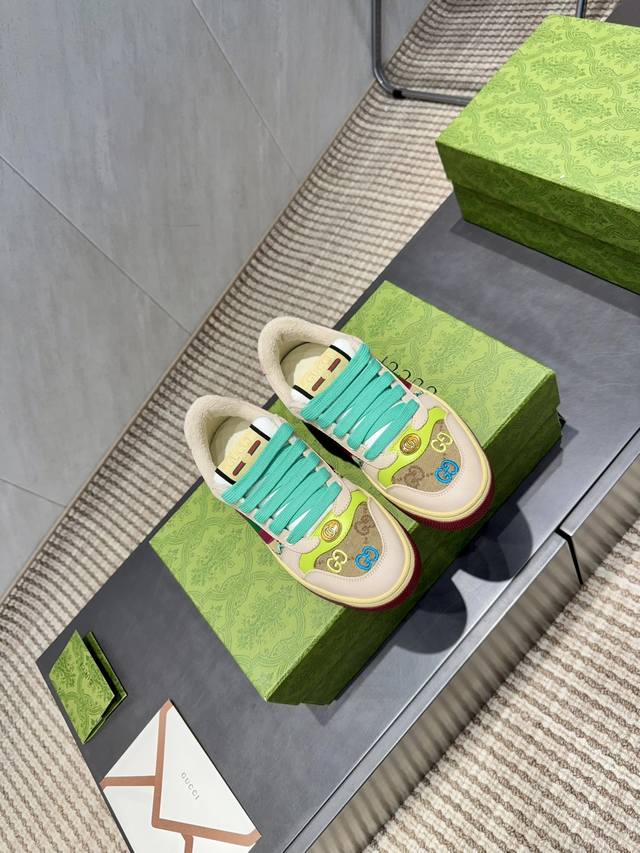 出厂:情侣刺绣 独家顶级版本 DDD 情侣拼色小脏鞋 DDD G家古驰小脏鞋全系列升级 长期做货 Gg古奇系列做旧休闲小脏鞋走秀款 Zp开发纯原版本 金属双G水晶圆柱形标 Gucc原版纹织带 鞋面擦色牛皮磨砂拼接经典双G布 DDD 面料:定制牛皮定制字母布料刺绣工艺 DDD 内里:定制原版毛巾布里,细腻柔软更舒适透气 DDD 垫脚:牛皮乳胶注塑一体,私模钢印 DDD 大底:原版开模双色Tpu大底 下层宽,上层窄 DDD 包装:原版飞机盒包装 DDD 码数:35-44 女41.男38.45.定制不退换 DD