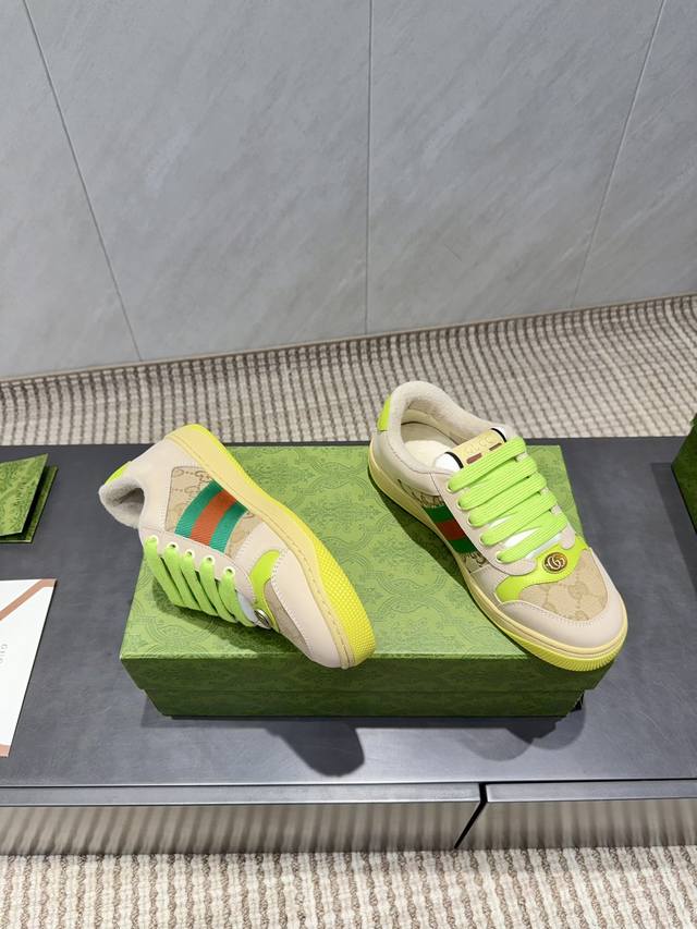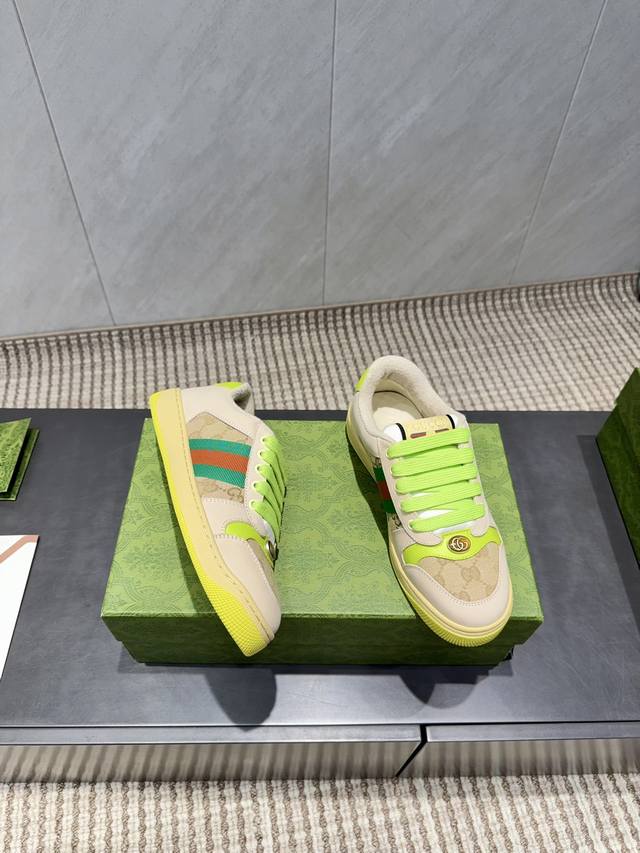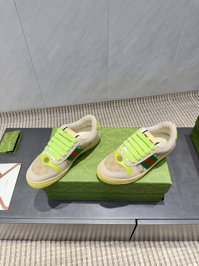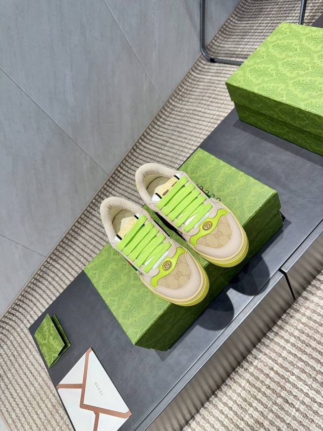 出厂:情侣 独家顶级版本 DDD 情侣拼色小脏鞋 DDD G家古驰小脏鞋全系列升级 长期做货 Gg古奇系列做旧休闲小脏鞋走秀款 Zp开发纯原版本 金属双G水晶圆柱形标 Gucc原版纹织带 鞋面擦色牛皮磨砂拼接经典双G布 DDD 面料:定制牛皮定制原版字母布料全油边封口工艺 DDD 内里:定制原版毛巾布里,细腻柔软更舒适透气 DDD 垫脚:牛皮乳胶注塑一体,私模钢印 DDD 大底:原版开模双色Tpu大底 下层宽,上层窄 DDD 包装:原版飞机盒包装 DDD 码数:35-44 女41.男38.45.定制不退换