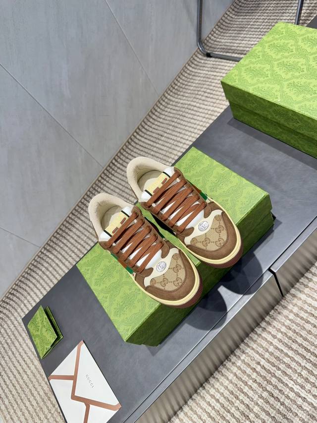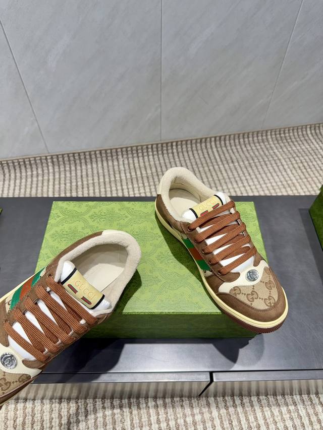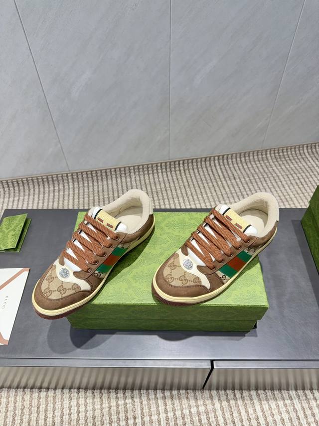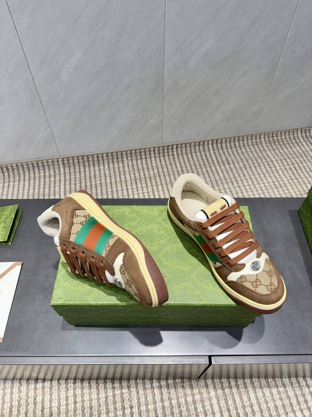 出厂:情侣 独家顶级版本 DDD 情侣拼色小脏鞋 DDD G家古驰小脏鞋全系列升级 长期做货 Gg古奇系列做旧休闲小脏鞋走秀款 Zp开发纯原版本 金属双G水晶圆柱形标 Gucc原版纹织带 鞋面擦色牛皮磨砂拼接经典双G布 DDD 面料:定制牛皮定制原版字母布料全油边封口工艺 DDD 内里:定制原版毛巾布里,细腻柔软更舒适透气 DDD 垫脚:牛皮乳胶注塑一体,私模钢印 DDD 大底:原版开模双色Tpu大底 下层宽,上层窄 DDD 包装:原版飞机盒包装 DDD 码数:35-44 女41.男38.45.定制不退换