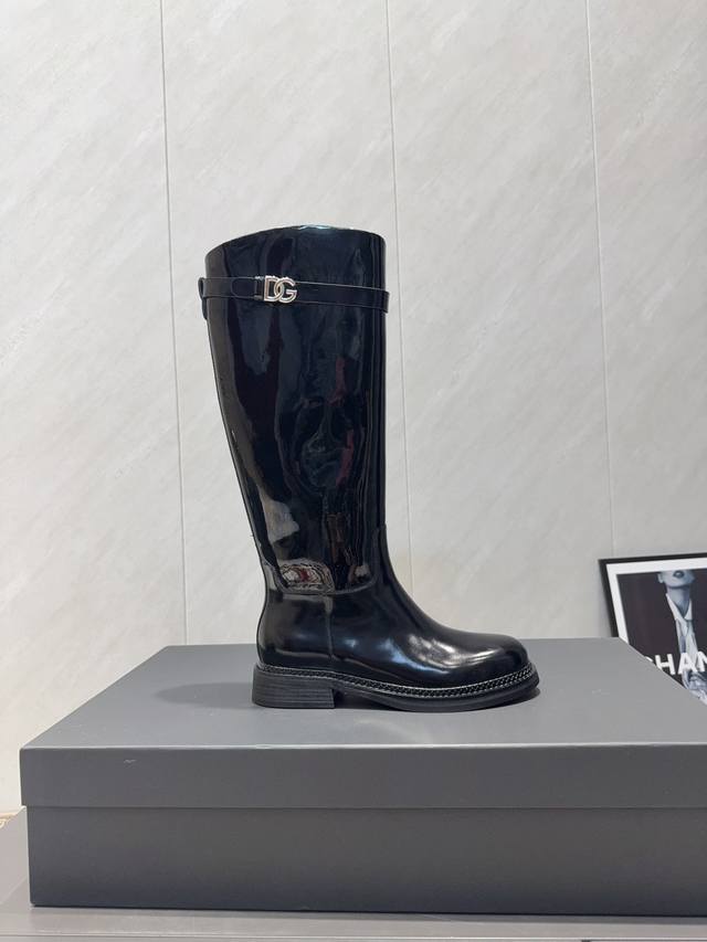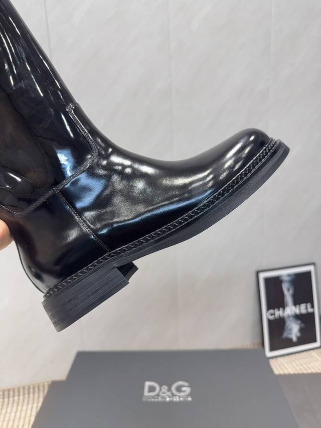 出厂: 独家顶级版本 Dolce & Gabbana 杜嘉班纳 25Vs秋冬爆款鞋子系列 圆头一脚蹬高靴 原版1:1定制,今年最潮最流行复古英伦风,简约大气,款款都好看,非常舒适,时尚百搭 鞋面:原版定制漆皮 内里:原版定制牛皮 垫脚:原版定制牛皮 大底:原版定制组合底 跟高:3.5Cm 码数:35-39 40.41.42定制不退换 包装:原版全套包装 颜色:官网同步更新