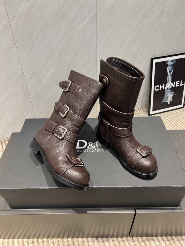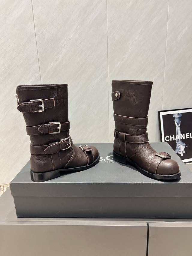 出厂: 独家顶级版本 Dolce & Gabbana 杜嘉班纳 25Vs秋冬爆款鞋子系列 圆头复古中靴 原版1:1定制,今年最潮最流行复古英伦风,简约大气,款款都好看,非常舒适,时尚百搭 鞋面:原版定制牛皮 内里:原版定制牛皮 垫脚:原版定制牛皮 大底:原版定制真皮组合底 跟高:3.5Cm 码数:35-39 40.41.42定制不退换 包装:原版全套包装 颜色:官网同步更新