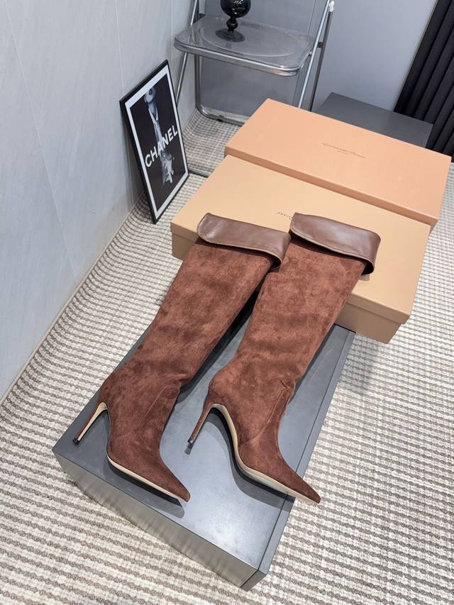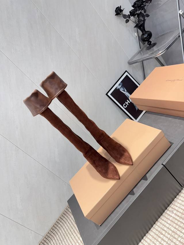 出厂: 独家顶级版本 DDD Gianvito Rossi2025Vs秋冬最新走秀爆款靴子系列 DDD 尖头一脚蹬长靴 DDD 顶级版本Gianvito Rossi秋冬限量走秀款长筒靴! DDD 今年最值得入手的靴子 没有之一!易梦玲同款超多网红明星上脚 Gianvito Rossi今年秋冬确实泰酷辣 秋冬限定款 专柜非常难买 看着很硬的样子 其实非常软巨好穿!脚感超赞! 靴筒宽大 不管腿粗腿细 都能穿出宽松感而且非常显腿直!!朋克风十足! DDD 鞋面:原版定制羊绒 DDD 内里:原版定制牛皮 DDD