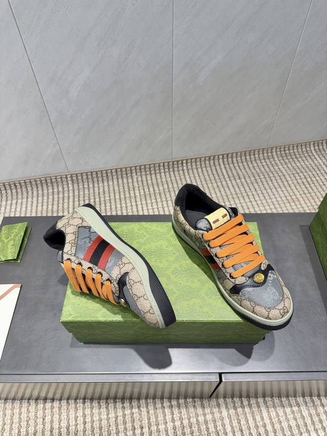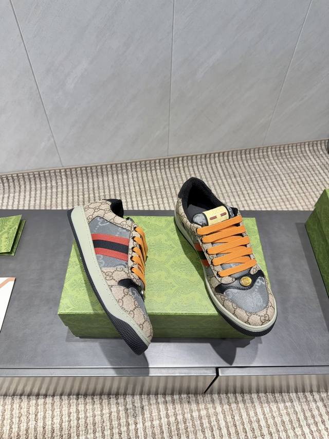 出厂:p男码 独家顶级版本 DDD 男款拼色小脏鞋 DDD G家古驰小脏鞋全系列升级 长期做货 Gg古奇系列做旧休闲小脏鞋走秀款 Zp开发纯原版本 金属双G水晶圆柱形标 Gucc原版纹织带 鞋面擦色牛皮磨砂拼接经典双G布 DDD 面料:定制牛皮定制原版字母布料全油边封口工艺 DDD 内里:定制原版毛巾布里,细腻柔软更舒适透气 DDD 垫脚:牛皮乳胶注塑一体,私模钢印 DDD 大底:原版开模双色Tpu大底 下层宽,上层窄 DDD 包装:原版飞机盒包装 DDD 码数:39-44 男38.45.定制不退换 DD