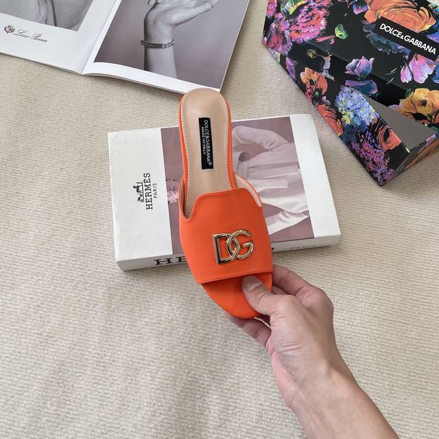 橙子出厂价p 杜嘉班纳 D&G 春夏新款 Dg金属扣平底拖鞋 休闲凉拖 码数 34-43
