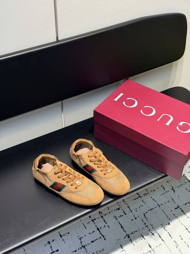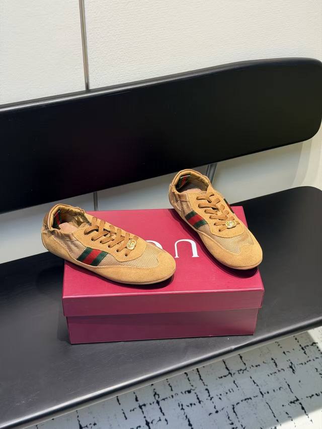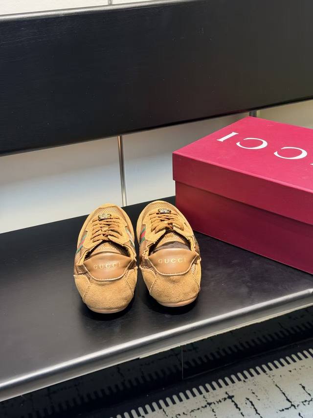 / 顶级代购 DDD Gg橡筋鞋超级轻盈柔软到可以卷起来的一双跳舞鞋棕色牛反绒面+Gg布,精心缀饰Gg五金扣。轻盈质感与闪耀外观兼具。鞋口羊皮包缝橡筋工艺。张驰有度