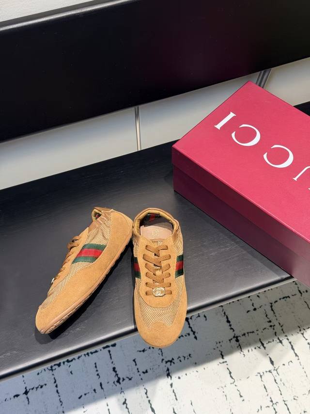 顶级代购 DDD Gg橡筋鞋超级轻盈柔软到可以卷起来的一双跳舞鞋棕色牛反绒面+Gg布,精心缀饰Gg五金扣。轻盈质感与闪耀外观兼具。鞋口羊皮包缝橡筋工艺。张驰有度