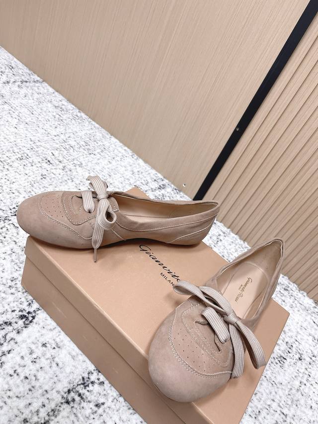 FFF 顶级版本: DDD Gianvito Rossi 26 Vault 系带 芭蕾鞋 休闲单鞋 DDD Gianvito Rossi这款系带芭蕾舞鞋,简约优雅又带点复古感。鞋头布洛克雕花,细节满分,浅口设计超显脚型,日常通勤或休闲都能轻松驾驭。 DDD 平底超舒适,长时间走路也不累,百搭不挑人,裙装裤装都能搭,轻松切换多种风格! DDD 鞋面: 羊京 DDD 内里: 羊皮 DDD 鞋底: 橡胶大底 DDD Suze: #35-39 40.41.订做 DDD
