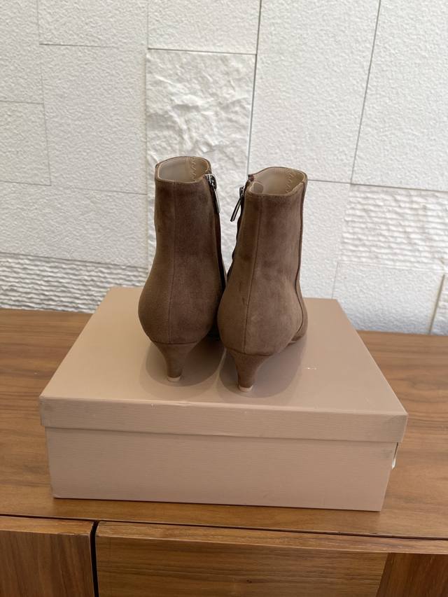 顶级版本: DDD Gianvito Rossi 25Ss 秋冬新款 尖头 内侧拉链 猫跟 及踝靴 短靴 DDD Gianvito Rossi经典尖头设计延伸视觉线条,悄然拉长腿部比例,同时修饰脚型,让双脚更显纤细修长;隐形侧拉链开合顺滑,穿脱便捷的同时,保持鞋面整体简洁流畅,不破坏风格完整性;恰到好处的中跟高度,通勤、约会等场景皆能轻松驾驭。沉稳大气的棕色系,适配秋冬大衣、西装裤的干练飒爽,也能为连衣裙、半裙增添轻熟韵味。无论是搭配直筒牛仔裤打造都市休闲风,还是配搭缎面长裙演绎法式浪漫,这双短靴都能成为