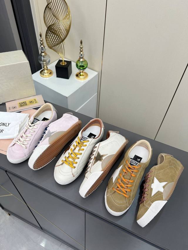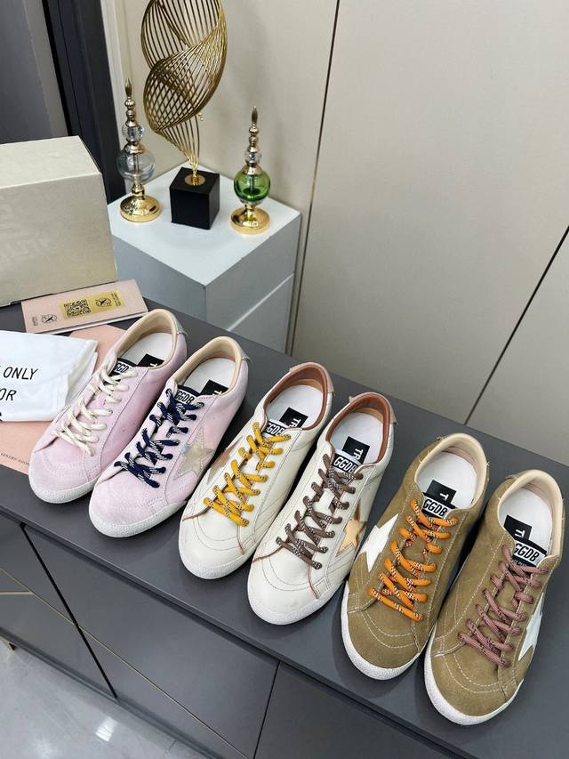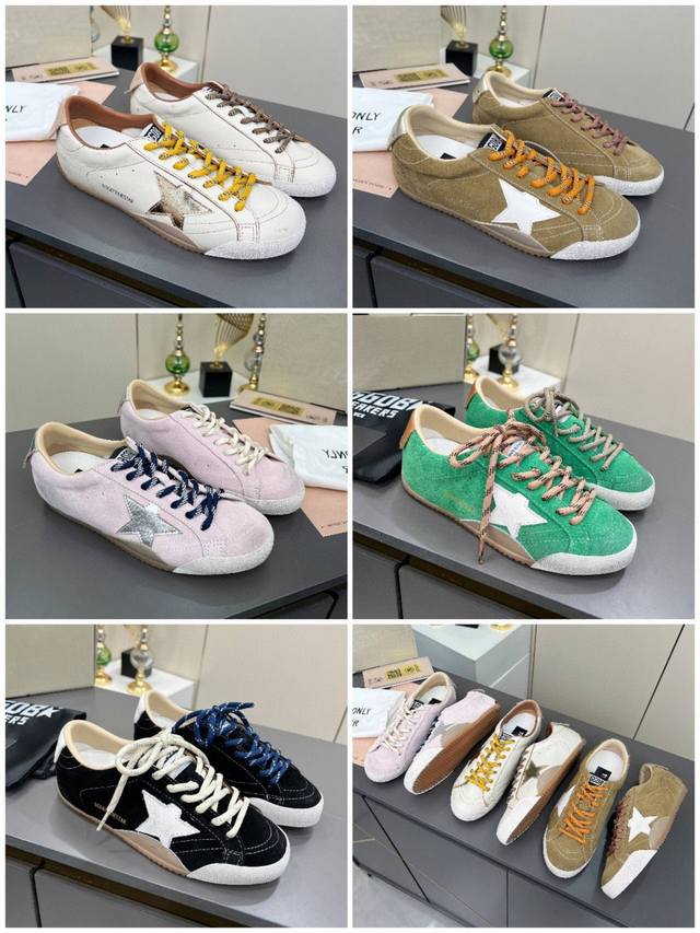 Ggdb二代最新星星作旧小脏鞋新款上架 DDD Golden Goose Ggdb百搭两穿休闲鞋双色鞋带,追求“完美的不完美”、品牌标志性的Lived-In 岁月留痕,做旧处理和独特的星星元素,是意大利手作工艺与经典外观的完美结合,不仅好穿辨识度高,表达了一种真实自由的态度,不刻意去追求一尘不染,随性不羁的痕迹反而更舒适自在 Material 材质 DDD 面料:进口小牛皮 DDD 内里:牛皮+毛巾布内里 DDD 大底:1:1开模Tpu大底 DDD 鞋垫:3厘米内增高活动乳胶羊皮鞋垫 DDD 女码:35-