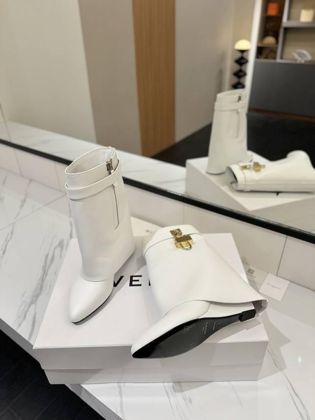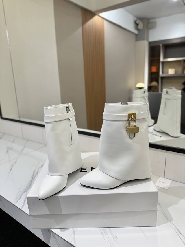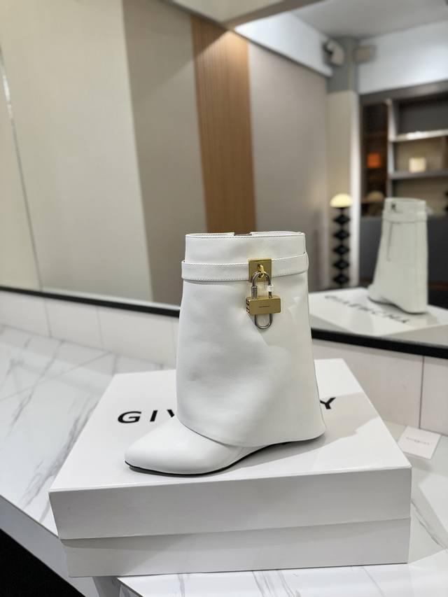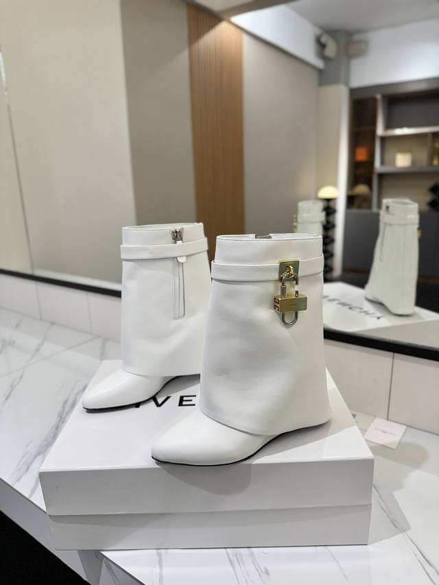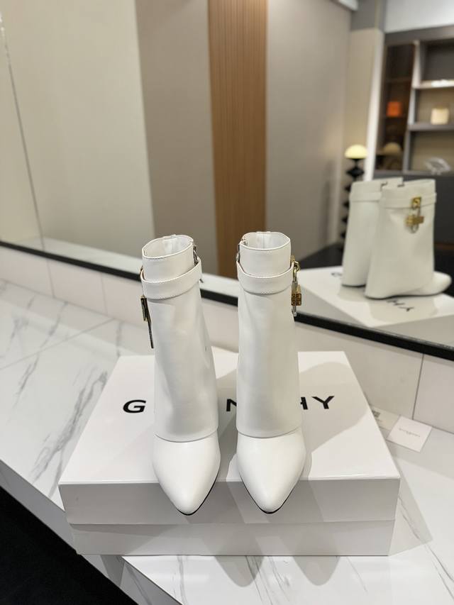 专柜正品级定制版本 DDD Givenchy纪梵希 Shark Lock 系列 挂锁 短靴新款,市面最高版本 DDD 纪梵希 锁扣 风靡整个时尚圈秒变大长腿 DDD 原版开发鞋型超级正 最高还原度鞋型 DDD 包裹性非常好 显瘦 显高级 超级舒适 DDD 鞋面:進口牛皮 DDD 内里:小牛皮 DDD 定制对版私模标志性Logo锁扣 DDD 锁扣搭配有纯银色,纯金色,金银混搭,下单备注即可 DDD 鞋跟:对版私模 跟高8.5Cm DDD 大底 :进口真皮大底 DDD 码数:35-40 34.40 41:42