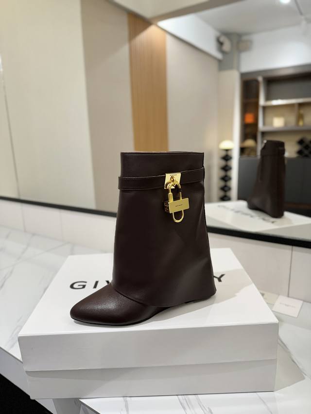专柜正品级定制版本 DDD Givenchy纪梵希 Shark Lock 系列 挂锁 短靴新款,市面最高版本 DDD 纪梵希 锁扣 风靡整个时尚圈秒变大长腿 DDD 原版开发鞋型超级正 最高还原度鞋型 DDD 包裹性非常好 显瘦 显高级 超级舒适 DDD 鞋面:進口牛皮 DDD 内里:小牛皮 DDD 定制对版私模标志性Logo锁扣 DDD 锁扣搭配有纯银色,纯金色,金银混搭,下单备注即可 DDD 鞋跟:对版私模 跟高8.5Cm DDD 大底 :进口真皮大底 DDD 码数:35-40 34.40 41:42
