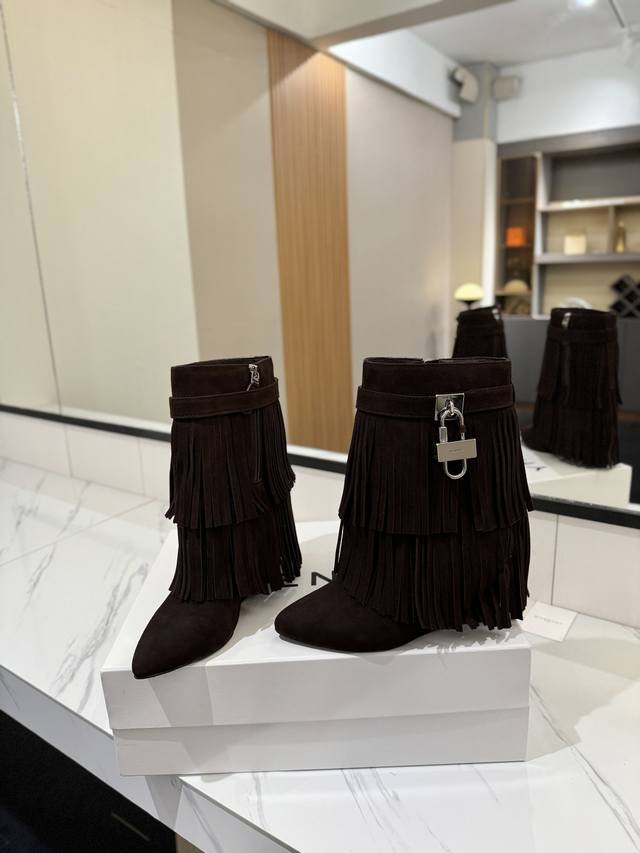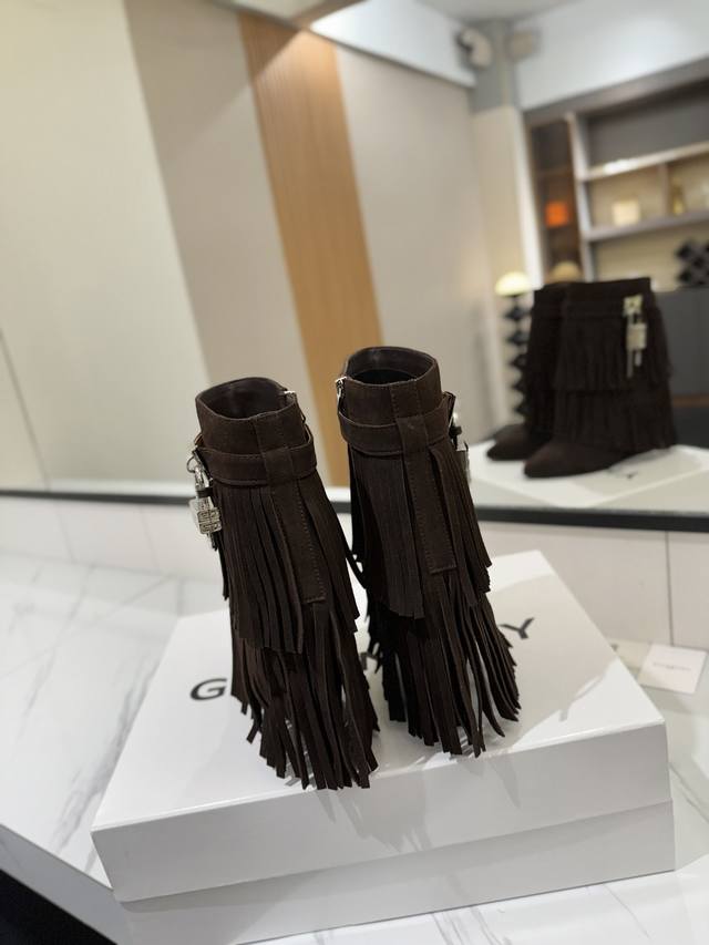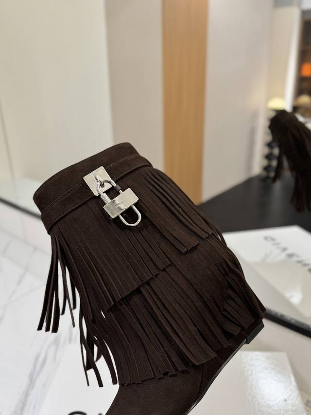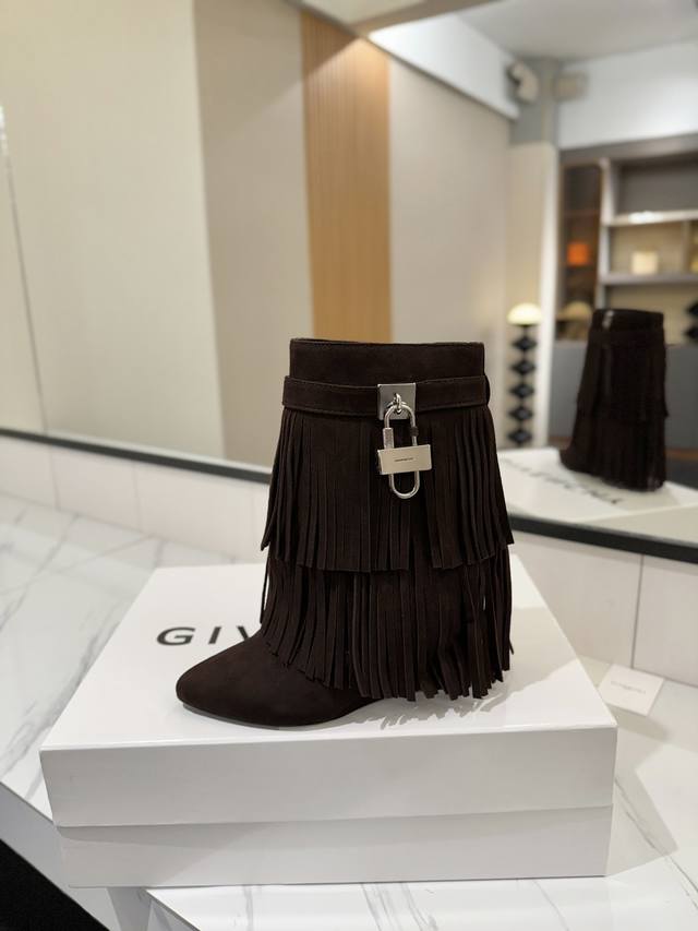 专柜正品级定制版本 Givenchy纪梵希 Shark Lock 系列 挂锁 短靴流苏新款,市面最高版本 纪梵希 锁扣 风靡整个时尚圈秒变大长腿 原版开发鞋型超