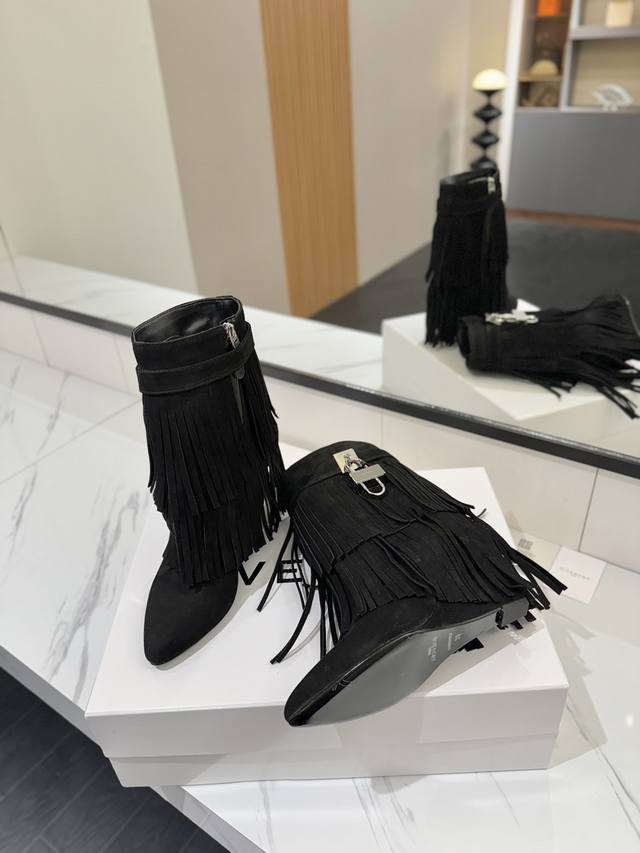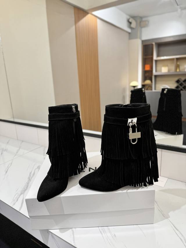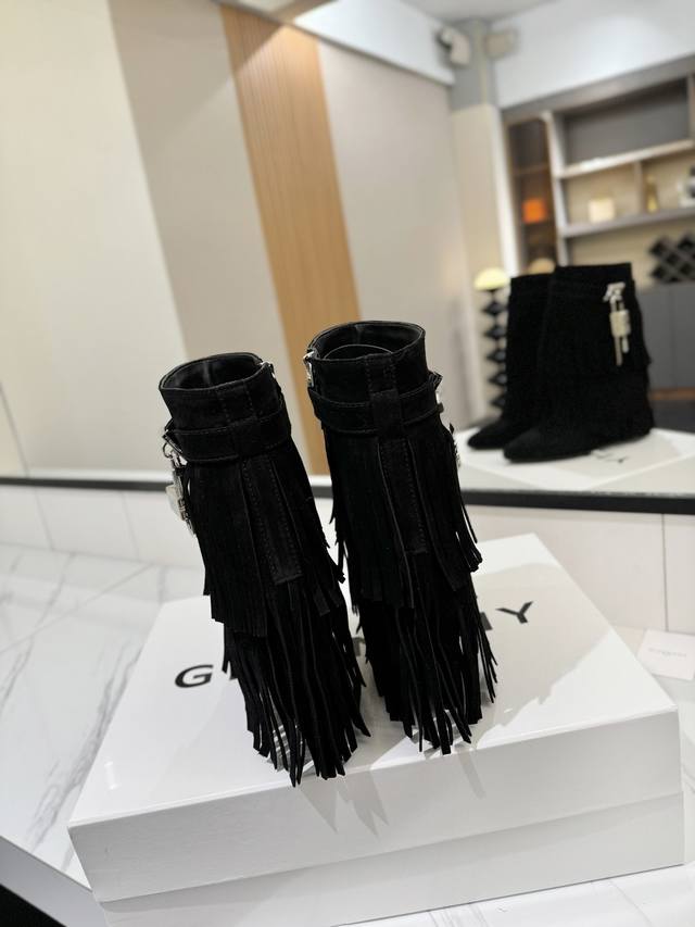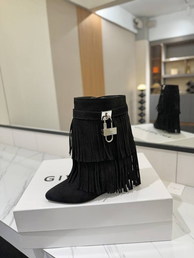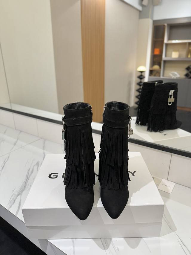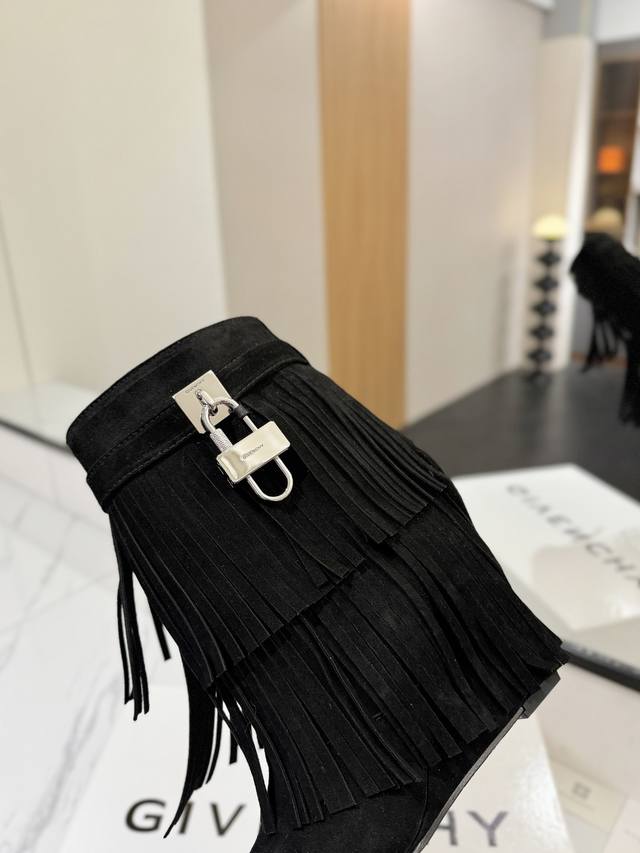 专柜正品级定制版本 DDD Givenchy纪梵希 Shark Lock 系列 挂锁 短靴流苏新款,市面最高版本 DDD 纪梵希 锁扣 风靡整个时尚圈秒变大长腿 DDD 原版开发鞋型超级正 最高还原度鞋型 DDD 包裹性非常好 显瘦 显高级 超级舒适 DDD 鞋面:進口磨砂皮 DDD 内里:小牛皮 DDD 定制对版私模标志性Logo锁扣 DDD 锁扣搭配有纯银色,纯金色,金银混搭,下单备注即可 DDD 鞋跟:对版私模 跟高8.5Cm DDD 大底 :进口真皮大底 DDD 码数:35-40 34.40 41