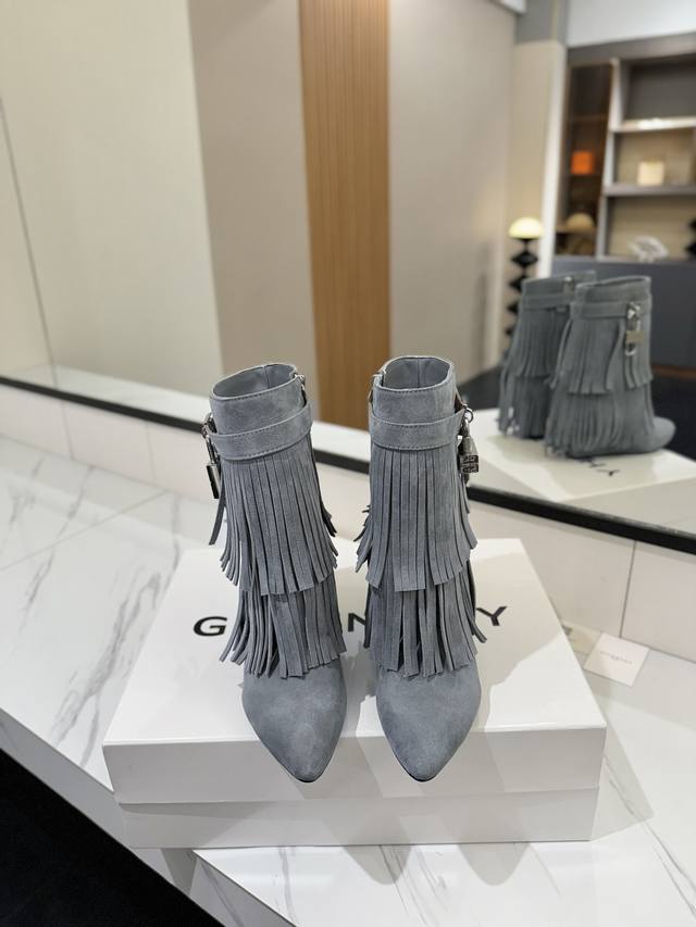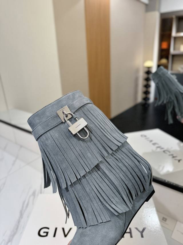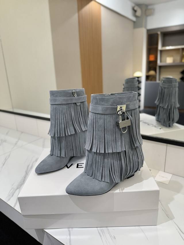 专柜正品级定制版本 DDD Givenchy纪梵希 Shark Lock 系列 挂锁 短靴流苏新款,市面最高版本 DDD 纪梵希 锁扣 风靡整个时尚圈秒变大长腿 DDD 原版开发鞋型超级正 最高还原度鞋型 DDD 包裹性非常好 显瘦 显高级 超级舒适 DDD 鞋面:進口磨砂皮 DDD 内里:小牛皮 DDD 定制对版私模标志性Logo锁扣 DDD 锁扣搭配有纯银色,纯金色,金银混搭,下单备注即可 DDD 鞋跟:对版私模 跟高8.5Cm DDD 大底 :进口真皮大底 DDD 码数:35-40 34.40 41