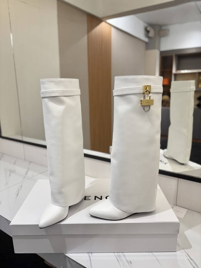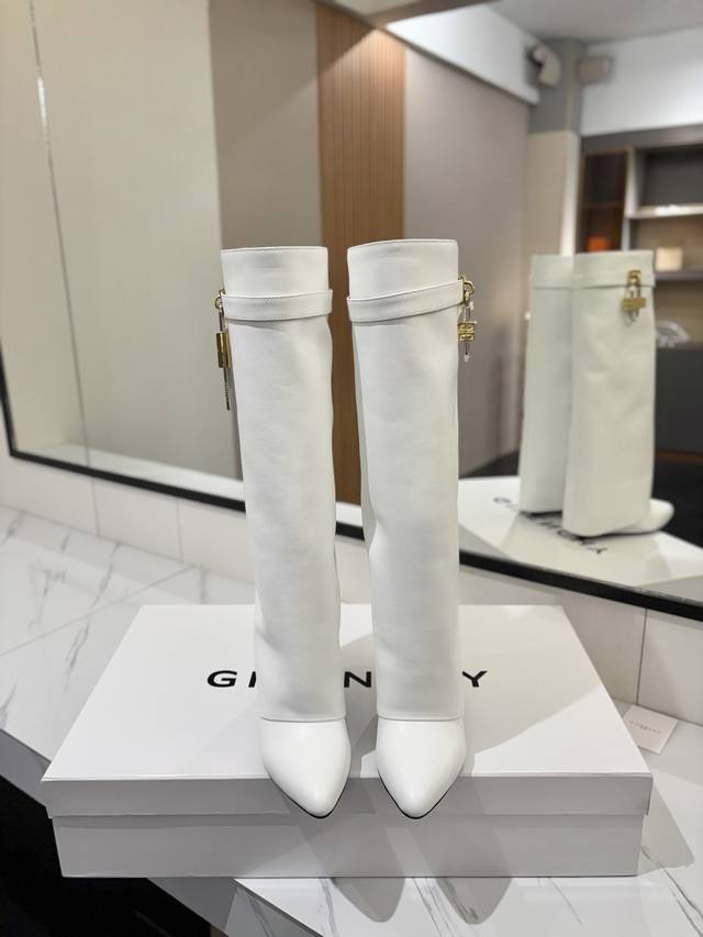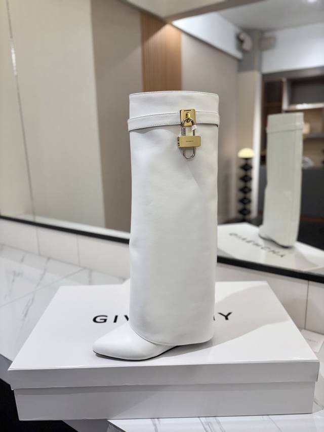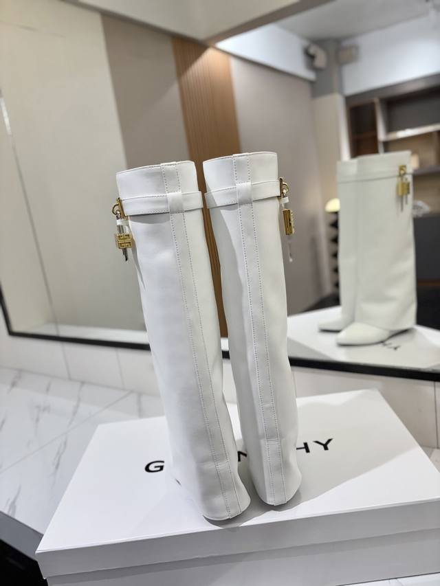 专柜正品级定制版本 DDD Givenchy纪梵希 Shark Lock 系列 挂锁 长靴 新款,市面最高版本 DDD 纪梵希 锁扣 风靡整个时尚圈 DDD 原版开发鞋型超级正 最高还原度鞋型 DDD 包裹性非常好 显瘦 显高级 超级舒适 DDD 鞋面:進口牛皮 DDD 内里:小牛皮 DDD 定制对版私模标志性Logo锁扣 DDD 锁扣搭配有纯银色,纯金色,金银混搭,下单备注即可 DDD 鞋跟:对版私模 跟高8.5Cm DDD 大底 :进口真皮大底 DDD 码数:35-40 34.40 41:42 可定制
