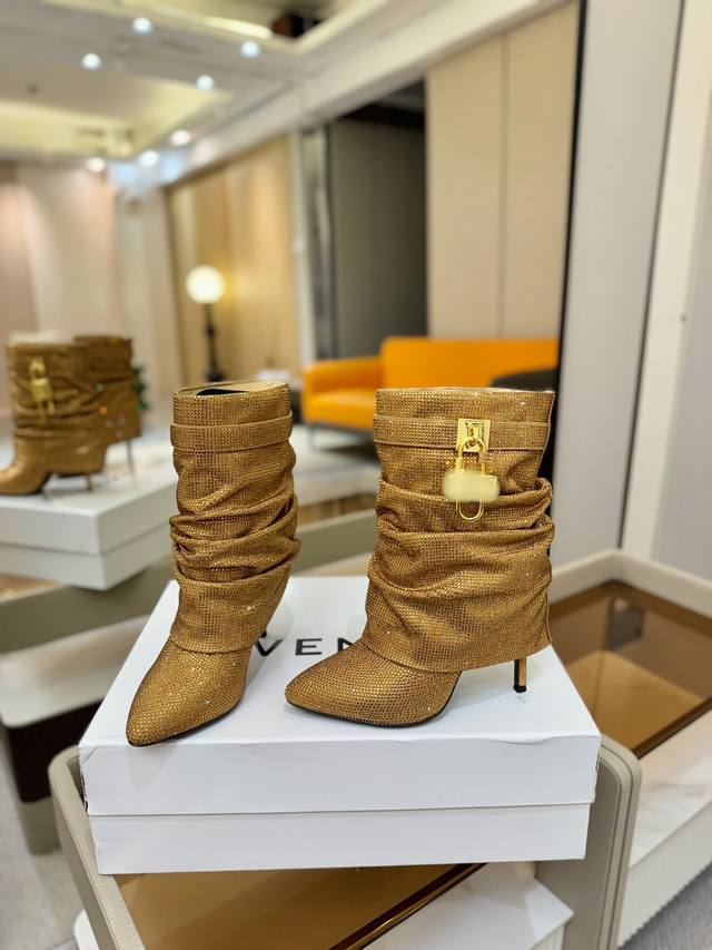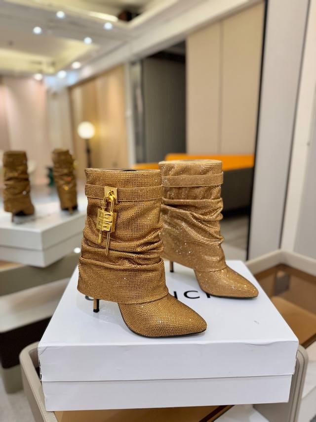 价格p: 专柜正品级定制版本 Givenchy 新款小奥钻高跟短靴,市面最高版本 纪梵希 锁扣 满钻四万多颗 风靡整个时尚圈 原版开发鞋型超级正 最高还原度鞋型