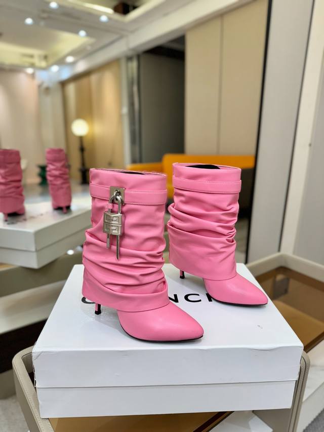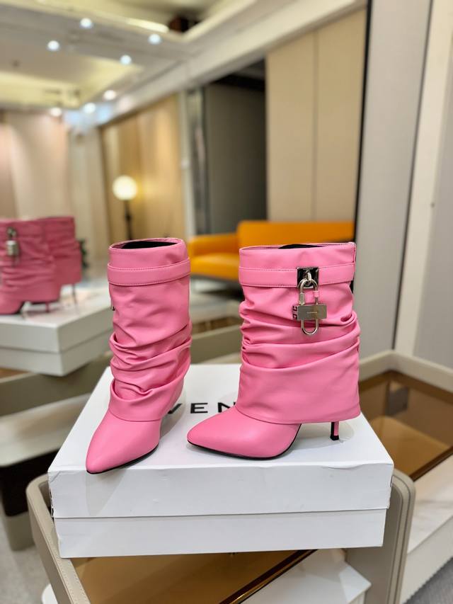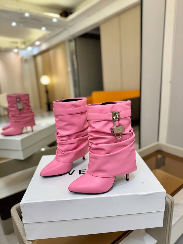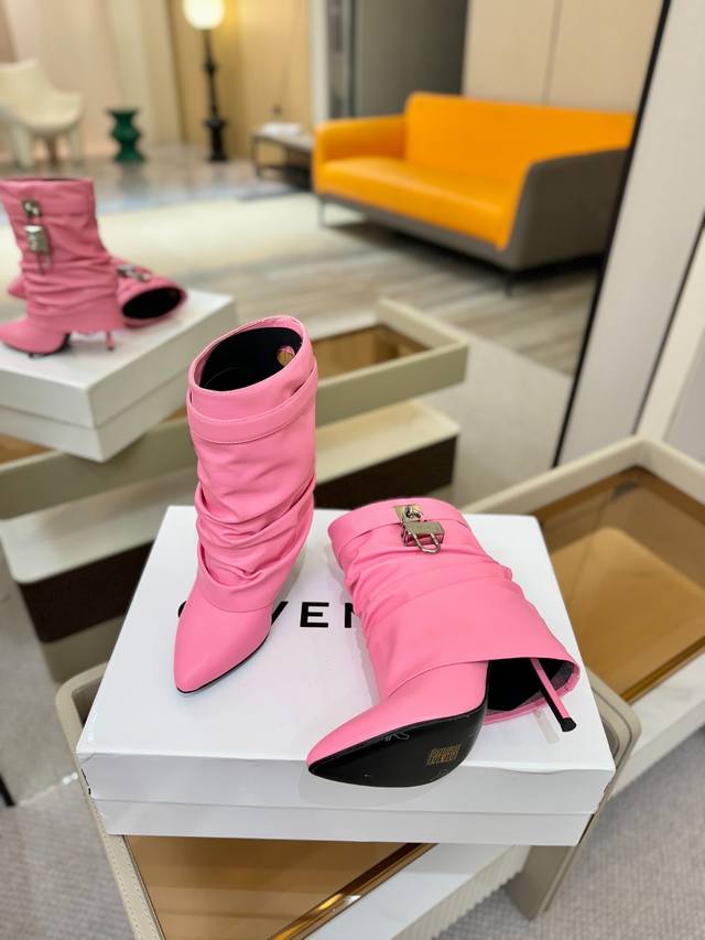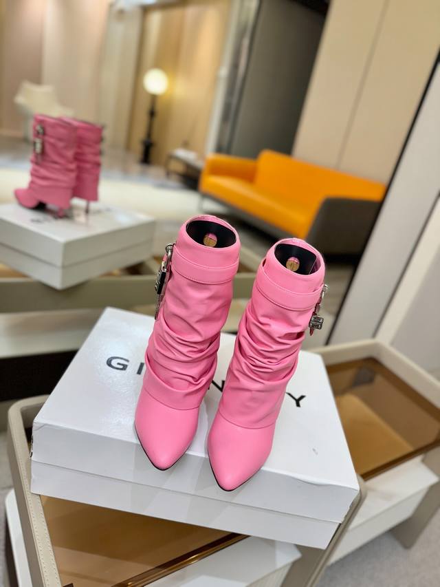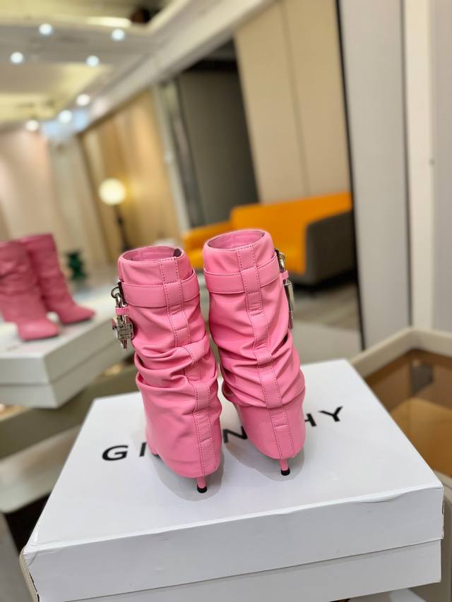 价格p: 专柜正品级定制版本 Givenchy 高跟细跟短靴,市面最高版本 纪梵希 锁扣 风靡整个时尚圈 原版开发鞋型超级正 最高还原度鞋型 包裹性非常好 显瘦