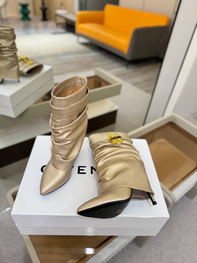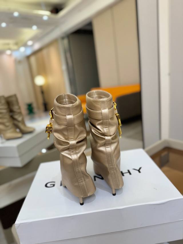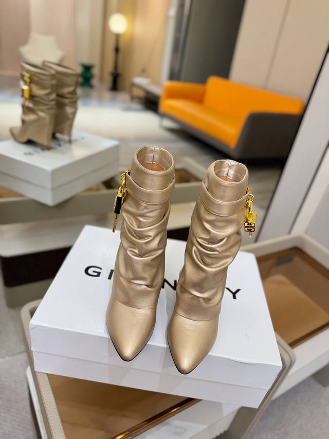 价格p: 专柜正品级定制版本 Givenchy 高跟细跟短靴,市面最高版本 纪梵希 锁扣 风靡整个时尚圈 原版开发鞋型超级正 最高还原度鞋型 包裹性非常好 显瘦