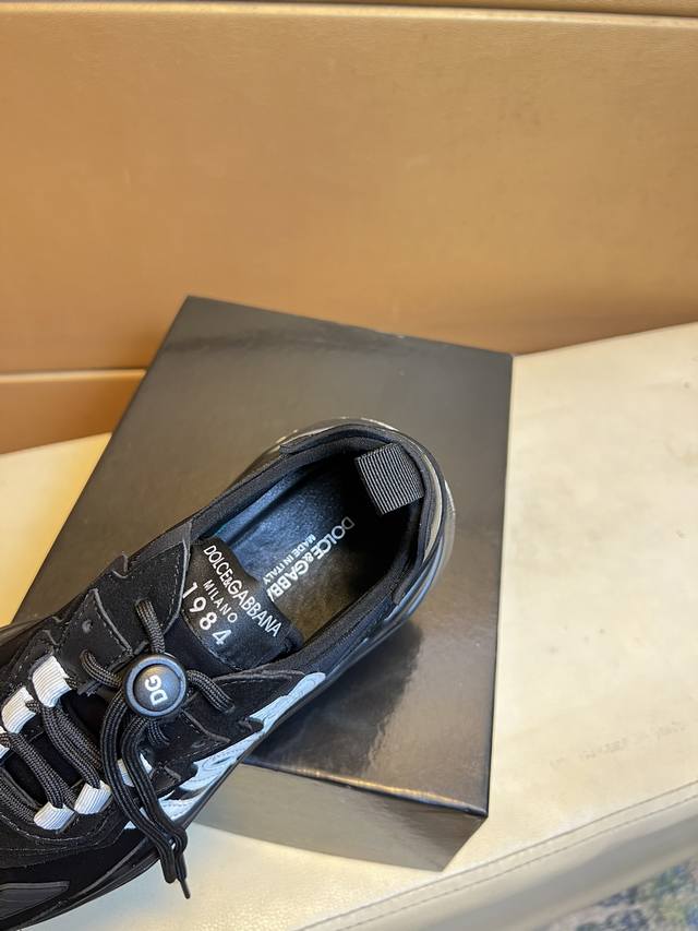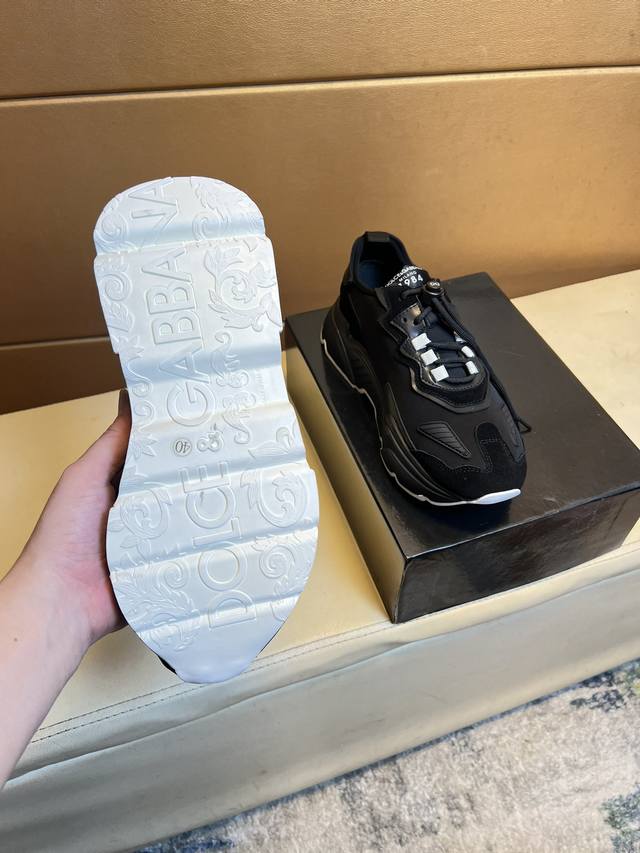 出厂价Pp: 新品Dolce&Gabbanadg高端男士运动休闲鞋。顶级专柜原单货。 原版进口多种材质拼接设计原版Tpr弹力大底。 Size:38-44 45、