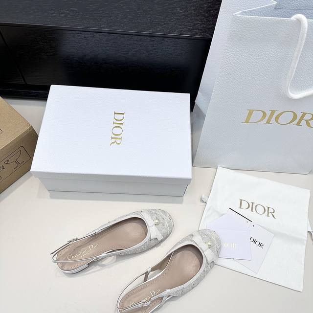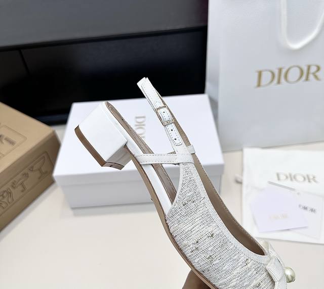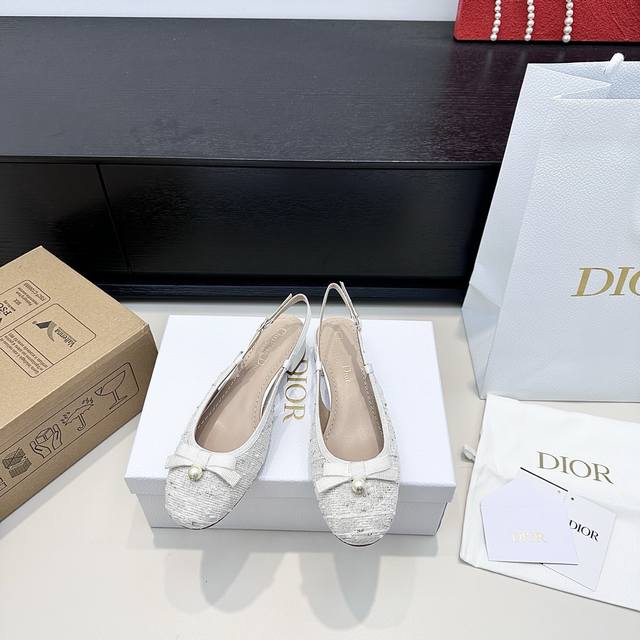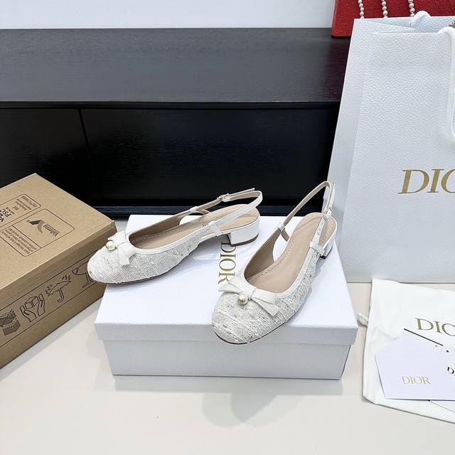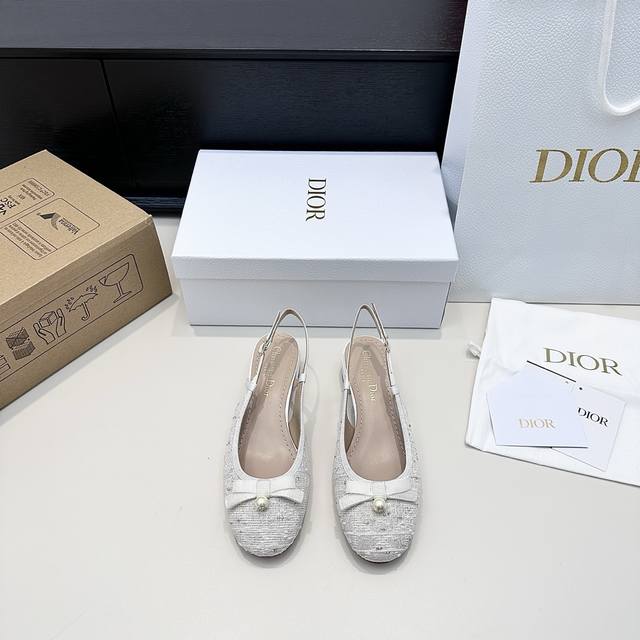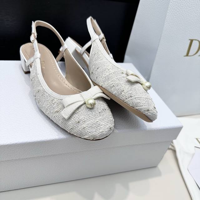 / 代购版 DDD Dior迪奥25年新款 Cd家珍珠蝴蝶结后空凉鞋 DDD 超级好看 温柔的样子 Cd倾情呈献 Adiorable低跟鞋 多色刺绣拼接以黄色珠饰及