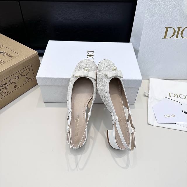 代购版 DDD Dior迪奥25年新款 Cd家珍珠蝴蝶结后空凉鞋 DDD 超级好看 温柔的样子 Cd倾情呈献 Adiorable低跟鞋 多色刺绣拼接以黄色珠饰及