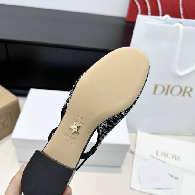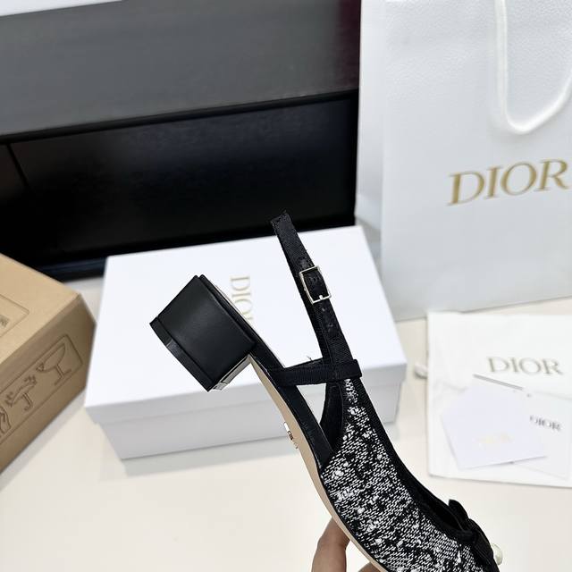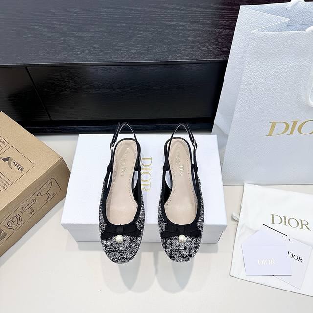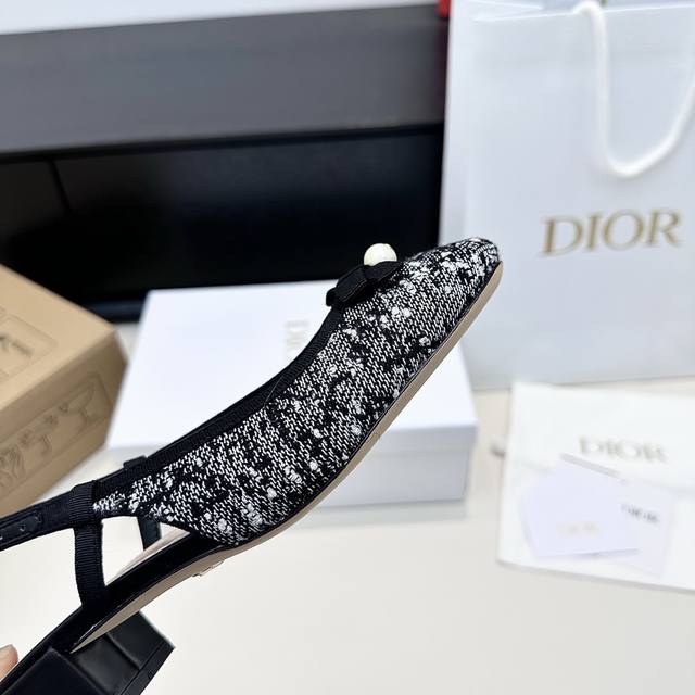 / 代购版 Dior迪奥25年新款 Cd家珍珠蝴蝶结后空凉鞋 超级好看 温柔的样子 Cd倾情呈献 Adiorable低跟鞋 多色刺绣拼接以黄色珠饰及蝴蝶结 为摩登造