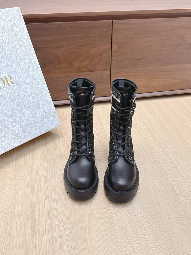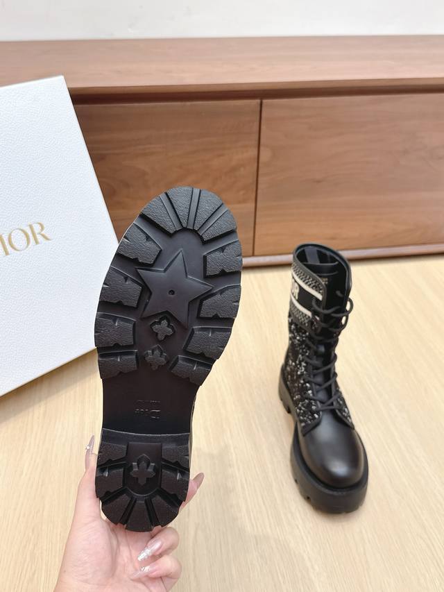 代购级 *# 迪奥新款轻底刺绣短靴 DDD 帅气靴子采用别具一格的设计元素打造醒目的外观 DDD 采用黑色科技面料和牛皮革打造,可轻松穿脱。从 Dior Book Tote 手袋汲取灵感,顶部饰以双色“Christian Dio*R”标志。 DDD 带有“Cd”标志的可调节尼龙带和波纹橡胶鞋底构成醒目轮廓的基 DDD 靴筒饰有“Christian Dio*R”标志 踝部以科技面料饰带环绕,搭配黄铜饰环 DDD 凹口橡胶鞋底饰以 Christian D*Ior 的幸运星符号 DDD Size:35-41 4