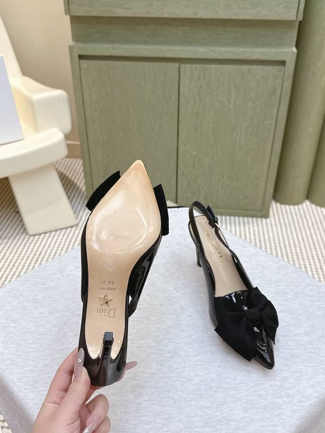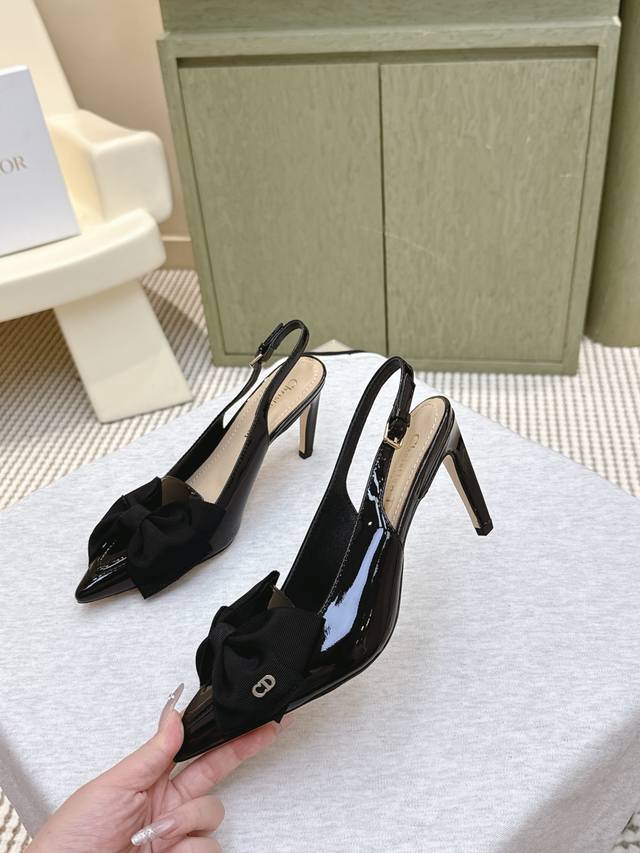 代购级 |D008125Sdior迪奥D-My 五金字母扣尖头高跟鞋平底小猫跟后空凉鞋 这款My Dior 高跟鞋是二零二五春夏成衣系列新品,彰显精致的优雅气质。采用牛皮革精心制作,尖头设计,点缀以金色饰面金属Christian Dior Paris标志,富有辨识度,彰显Dior 非凡的精湛工艺。镂空装饰5Cm 8.5Cm图形风格鞋跟相得益彰,令时尚的设计更显典雅 鞋面:牛漆皮 内里垫脚:羊皮 鞋底:意大利真皮大底 跟高:5Cm 8.5Cm 码数:35-39 34.40.41.42定做不退换