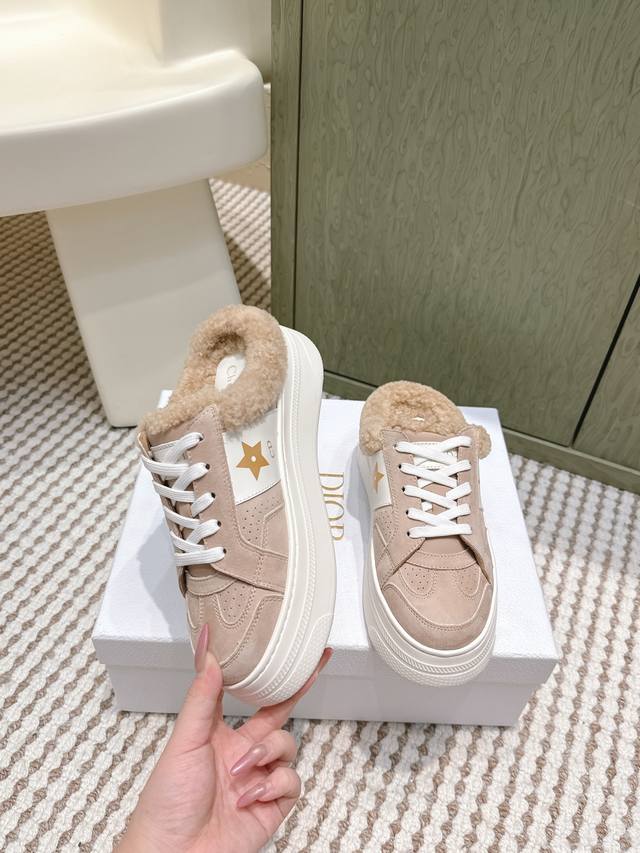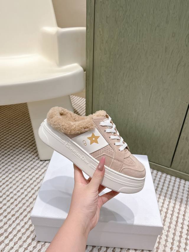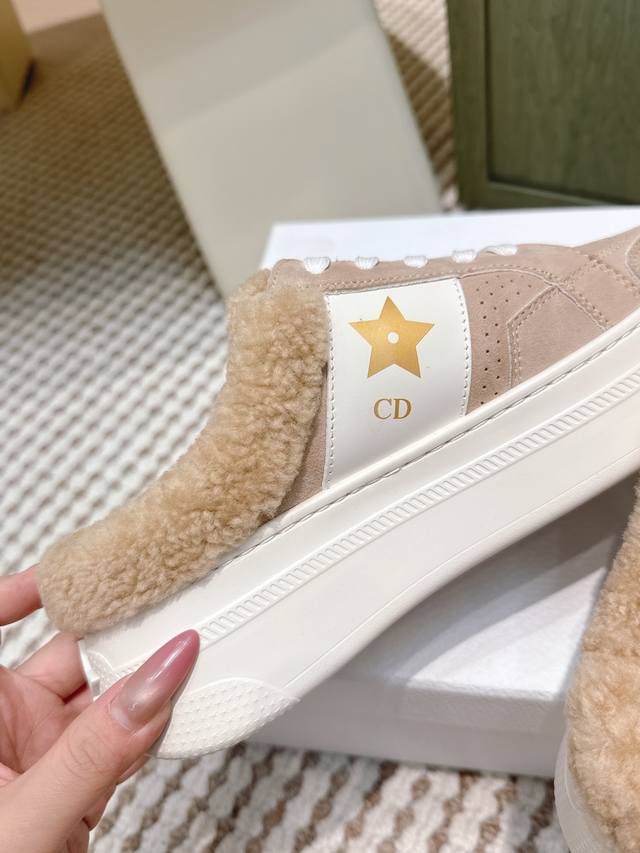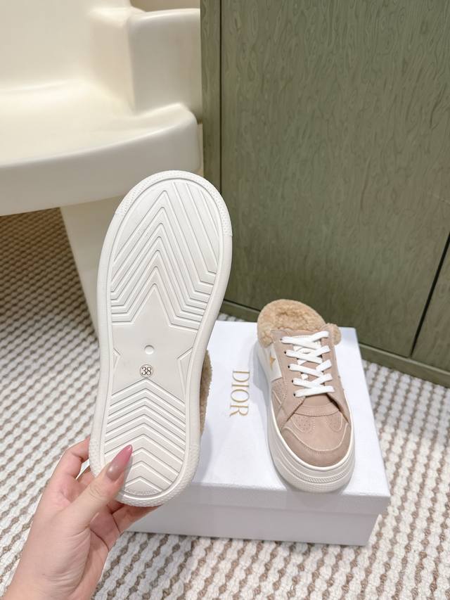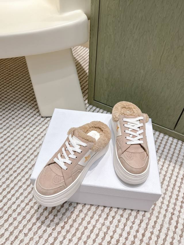 代购级 DDD Dior 迪奥 Star 运动毛毛鞋半托鞋 DDD 这款 Dior Star 运动鞋延续经久不衰的轮廓,是新款经典单品。采用白色牛皮革精心制作,饰以同色调绒面牛皮革镶片。点缀以 Cd 和 Christian Dior paris 标志,金属覆层星星装饰一个鞋带孔眼,提升格调。款式轻盈,搭配 Christian Dior 标志轻薄鞋底,四季皆宜,可与各式休闲造型搭配,增添点睛之笔。 DDD Size :35-39 40.41定做 DDD